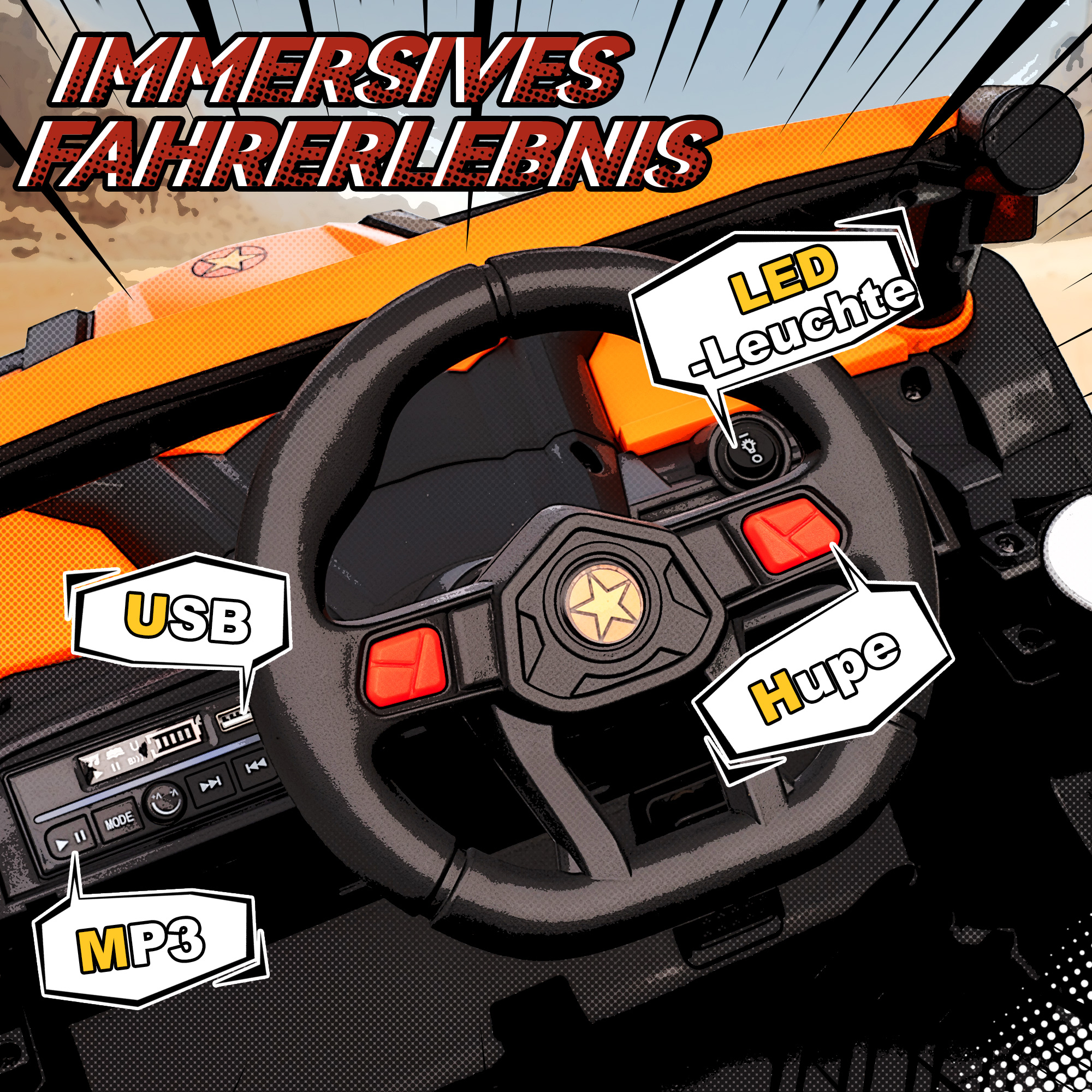 12V Elektroauto für Kinder, Fernbedienungsfunktion, Gurt, Hupe, LED-Lichter, USB-Port, für 3-5 Jahre, Orange