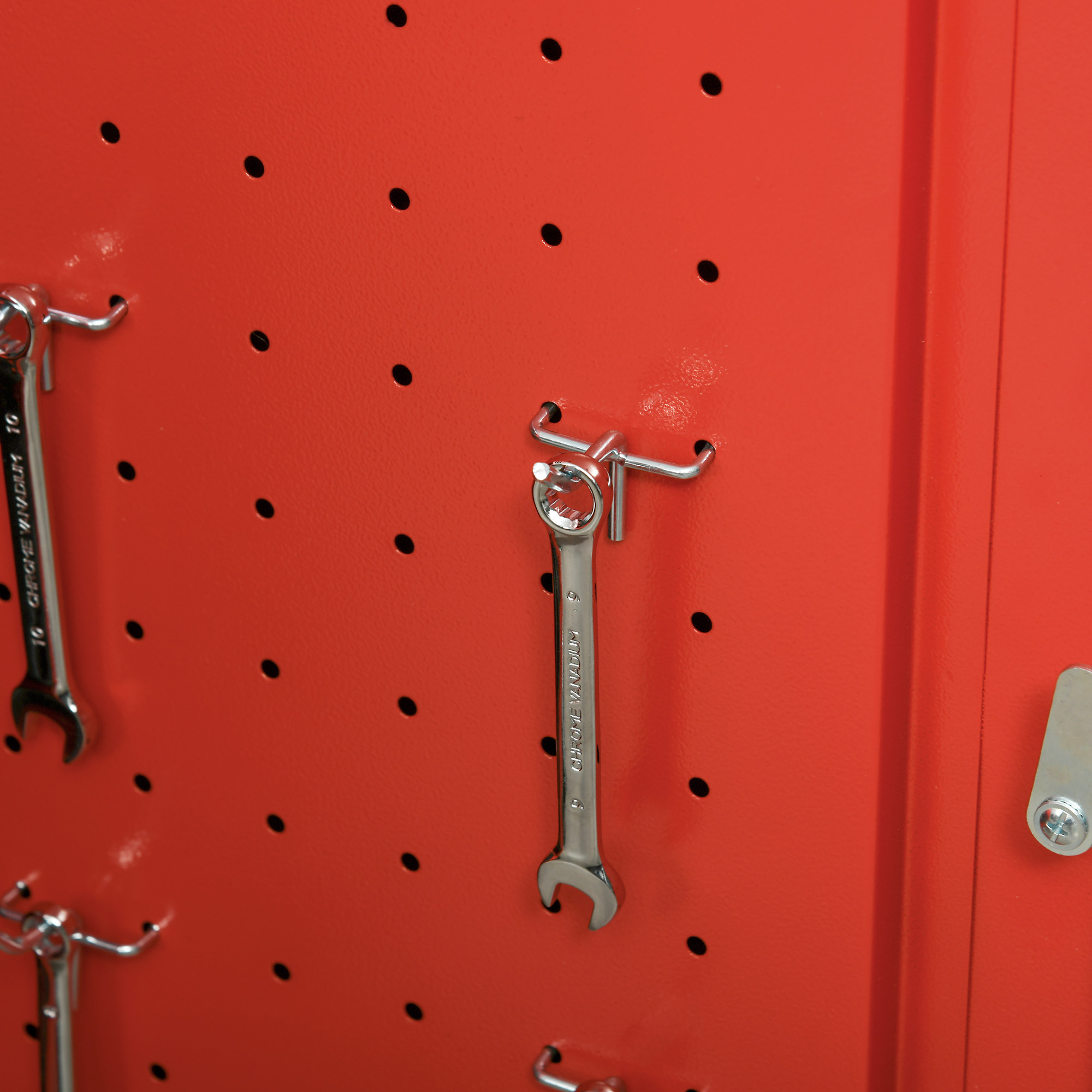 - Großer Stauraum: Mit einem oberen Fach, 3 Schubladen, einem geräumigen Schrank und einer Werkzeugtafel bietet der Werkzeugschrank reichlich Platz zur Organisation Ihrer Werkzeuge, Zudem lässt sich der Einlegeboden im Schrankfach 3-stufig in der Höhe versetzen