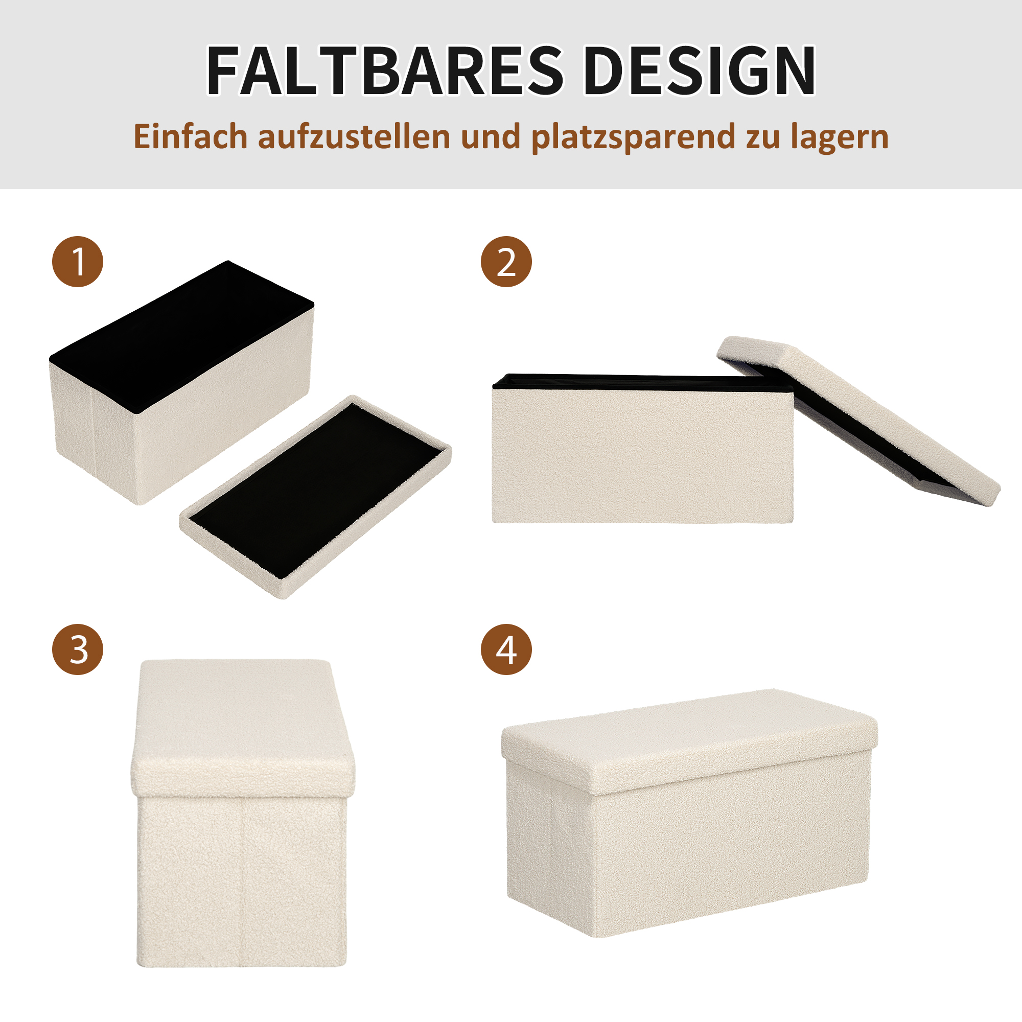 - - Faltbares Design, einfach aufzubauen oder zusammenzuklappen, wenn der Sitzhocker mit Stauraum nicht gebraucht wird