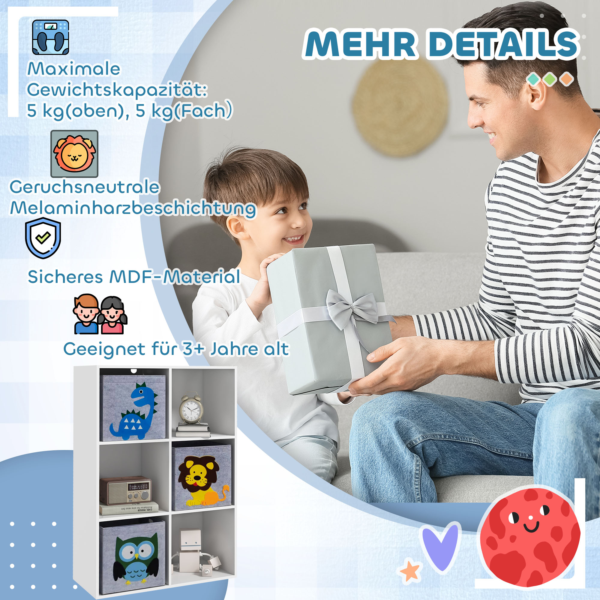 Entdecken Sie die ideale Lösung für das chaotische Kinderzimmer - der ZONEKIZ Aufbewahrungsschrank, Sechs großzügige Fächer bieten reichlich Raum, um Spielzeug und Kleinigkeiten ordentlich zu verstauen und so das Chaos zu minimieren, Dank seines stabilen Designs steht der Schrank fest und sicher, inklusive Kippschutz für mehr Sicherheit, Die Montage ist unkompliziert und schnell erledigt, Mit fröhlichen Tiermotiven im Cartoon-Stil gestaltet, bringt er Spaß und Farbe in das Zimmer Ihres Kindes,