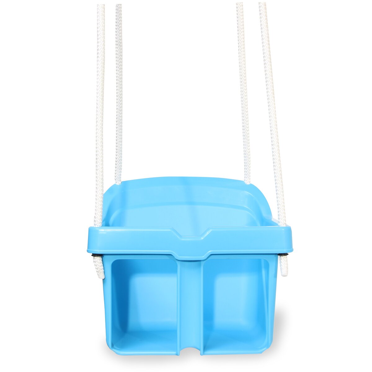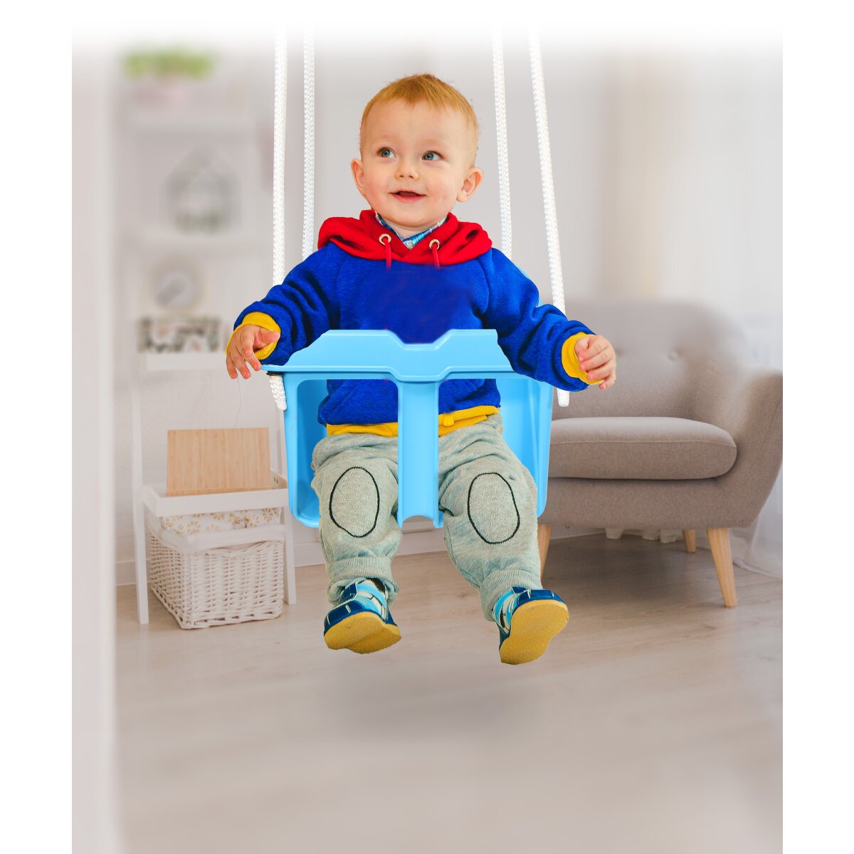 In verschiedenen Farben ist diese kippsichere Indoor- Outdoor Babyschaukel erhältlich. Durch einen Sicherheitsbügel und 4-fache Befestigung der Seile ist der Sitz kippsicher und für Babys ab 10 Monate geeignet.