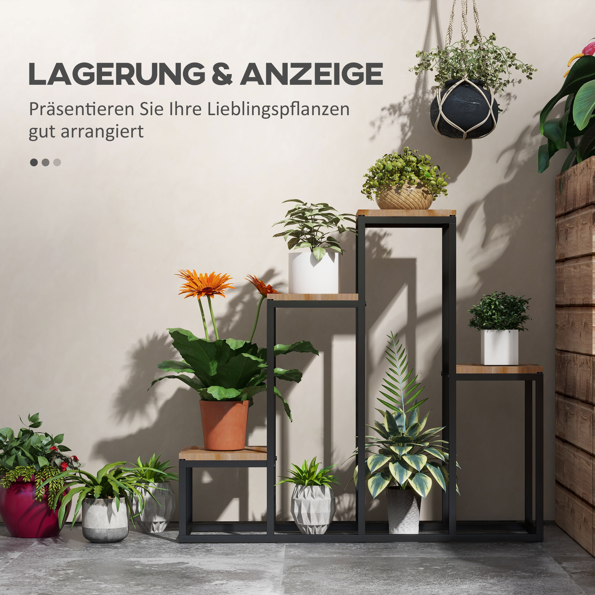 Das Outsunny Blumenregal zieht alle Blicke auf sich und verleiht jedem Raum Glanz, Mit seinen vier Regalböden bietet es stilvolle Präsentationsflächen für Pflanzen, Bücher, Fotos und viel mehr, Die stabile Konstruktion des Blumenständers aus Stahl und Holz gewährleistet eine langjährige Nutzung,