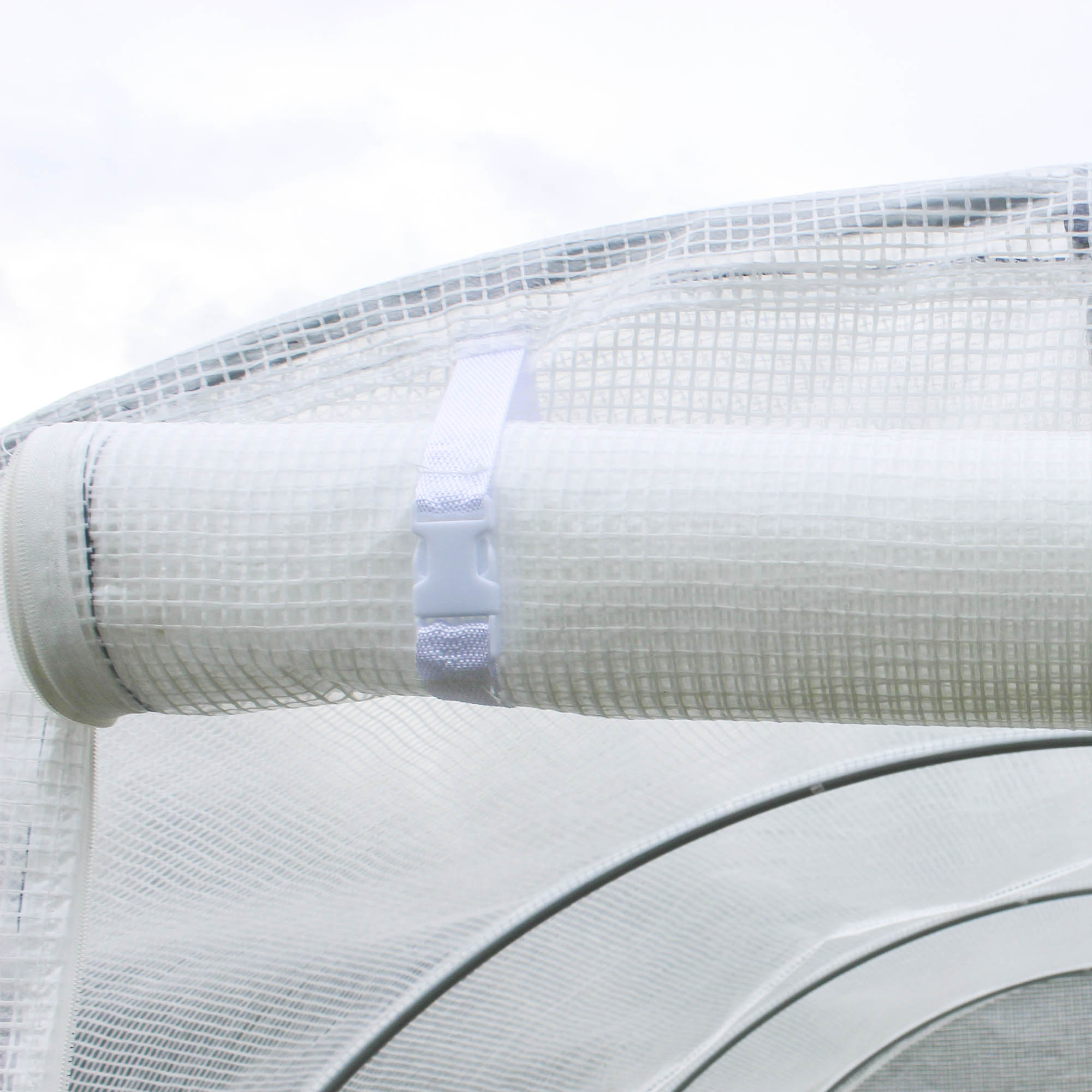 - Aufrollbare Eingangstür: Die großzügige, aufrollbare Folientür mit Reißverschluss erleichtert den Zugang der Gewächshausfolie und kann oben fixiert werden, um dauerhaft geöffnet zu bleiben