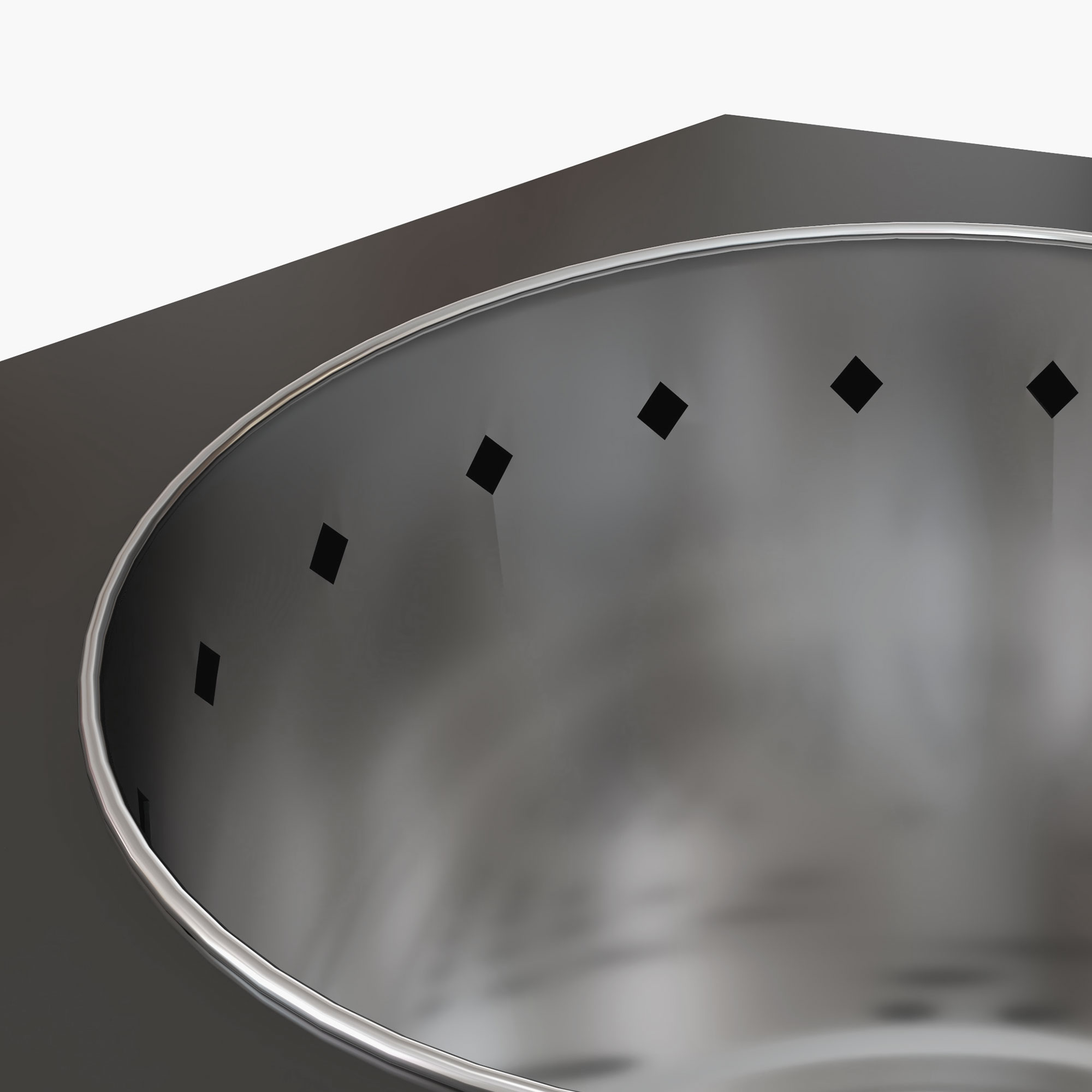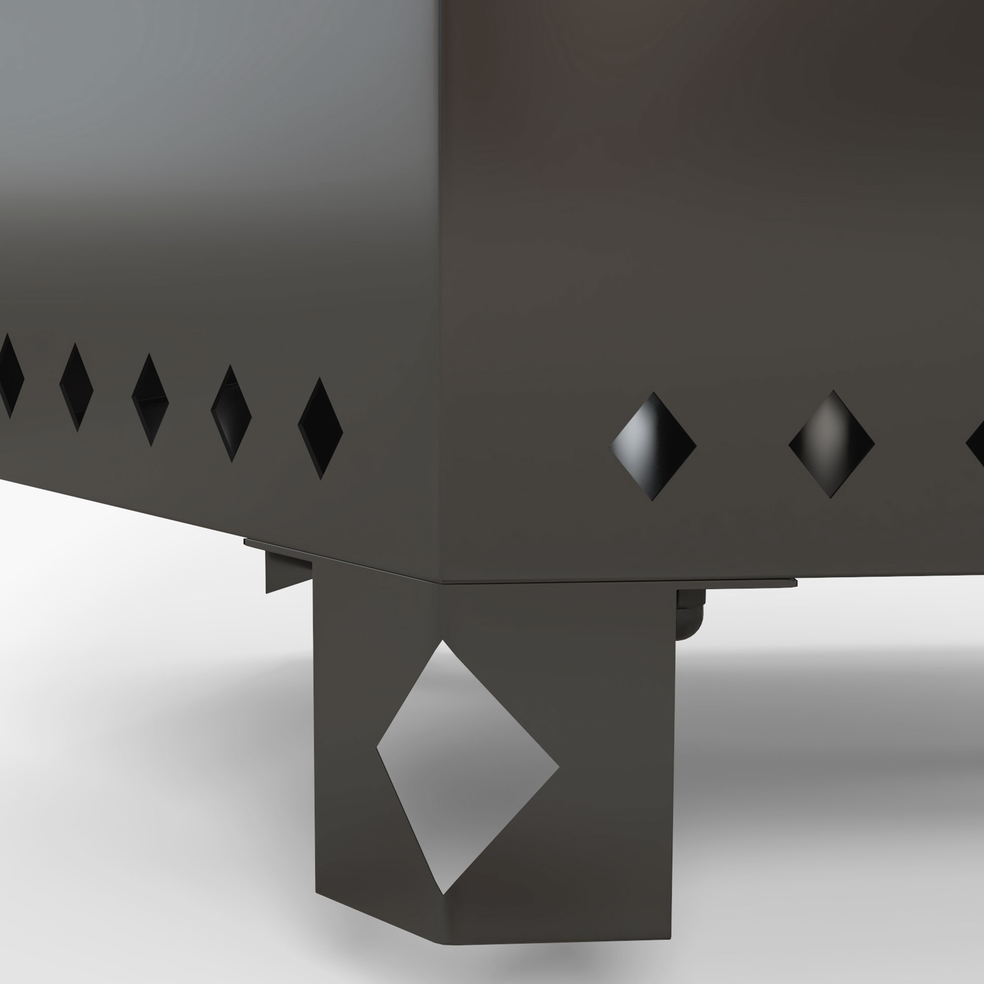 - Sekundärverbrennungssystem: Unsere sechseckige Feuerstelle hat Lüftungslöcher im Boden, durch die das Feuer von unten mit Sauerstoff versorgt wird, was zu einer intensiven Verbrennung führt, Außerdem zirkuliert der heiße Sauerstoff zwischen den Wänden, wodurch ein sekundärer Verbrennungsprozess für ein rauchfreies Feuer entsteht