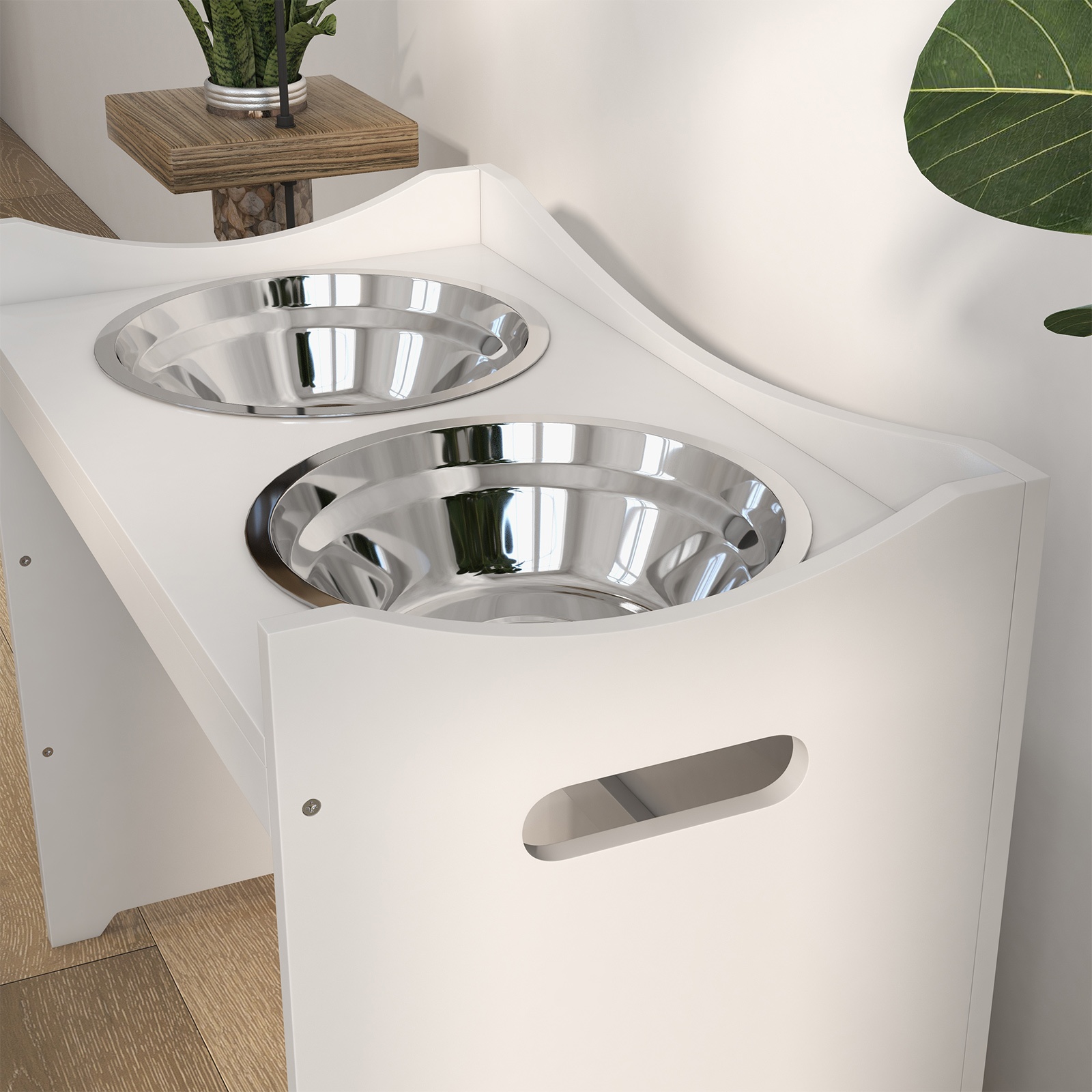 Futterstation für Hunde, 2 Edelstahlnäpfe, höhenverstellbar, 54x31,5x47cm, Weiß