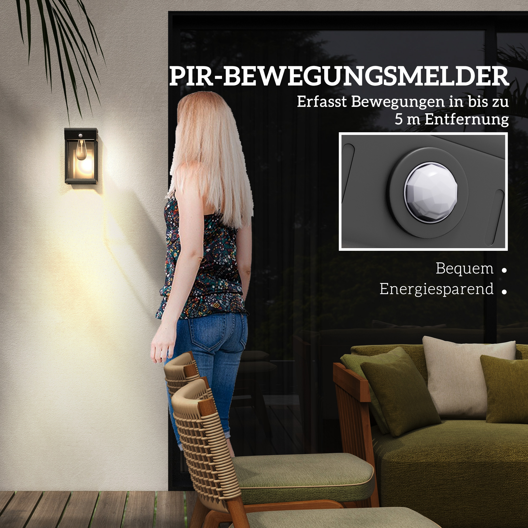 Beleuchten Sie Ihren Außenbereich mit der Outsunny Solar-Wandleuchte, einem solarbetriebenen Wunderwerk mit verstellbarem Winkel des Solarpanels für optimale Energieausbeute, Genießen Sie den Komfort des Bewegungssensors, der bei Annäherung bis zu 5 Meter weit leuchtet, Die einstellbare Helligkeit und das wetterfeste Design machen diese Solar-Wandleuchte zur idealen Wahl für Hauseingänge, Veranden und Garagen,