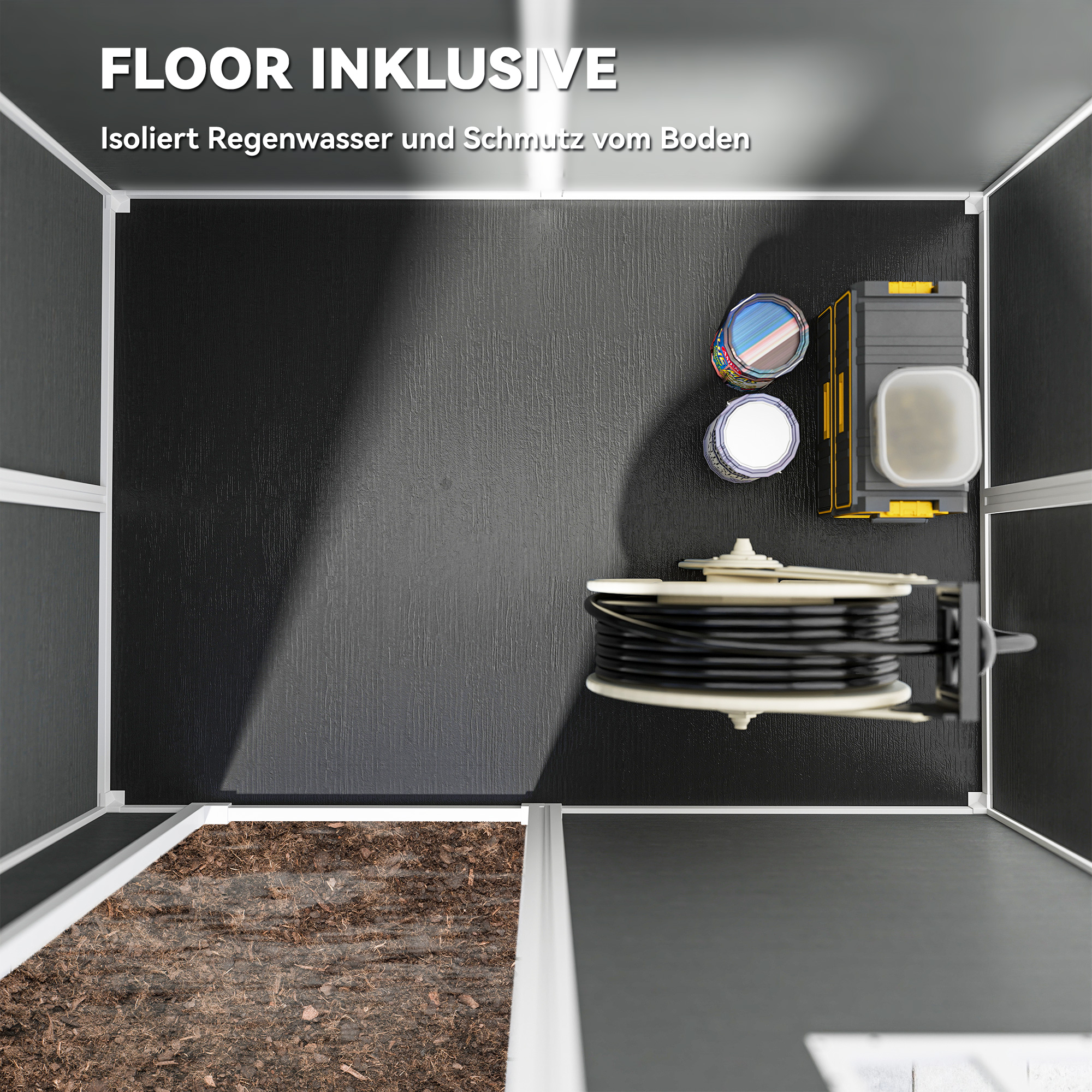 Gartenhaus, Gartenschuppen mit Boden, Fenster, verschließbarer Tür, Kunststoff-Harz, wetterfest, Grau