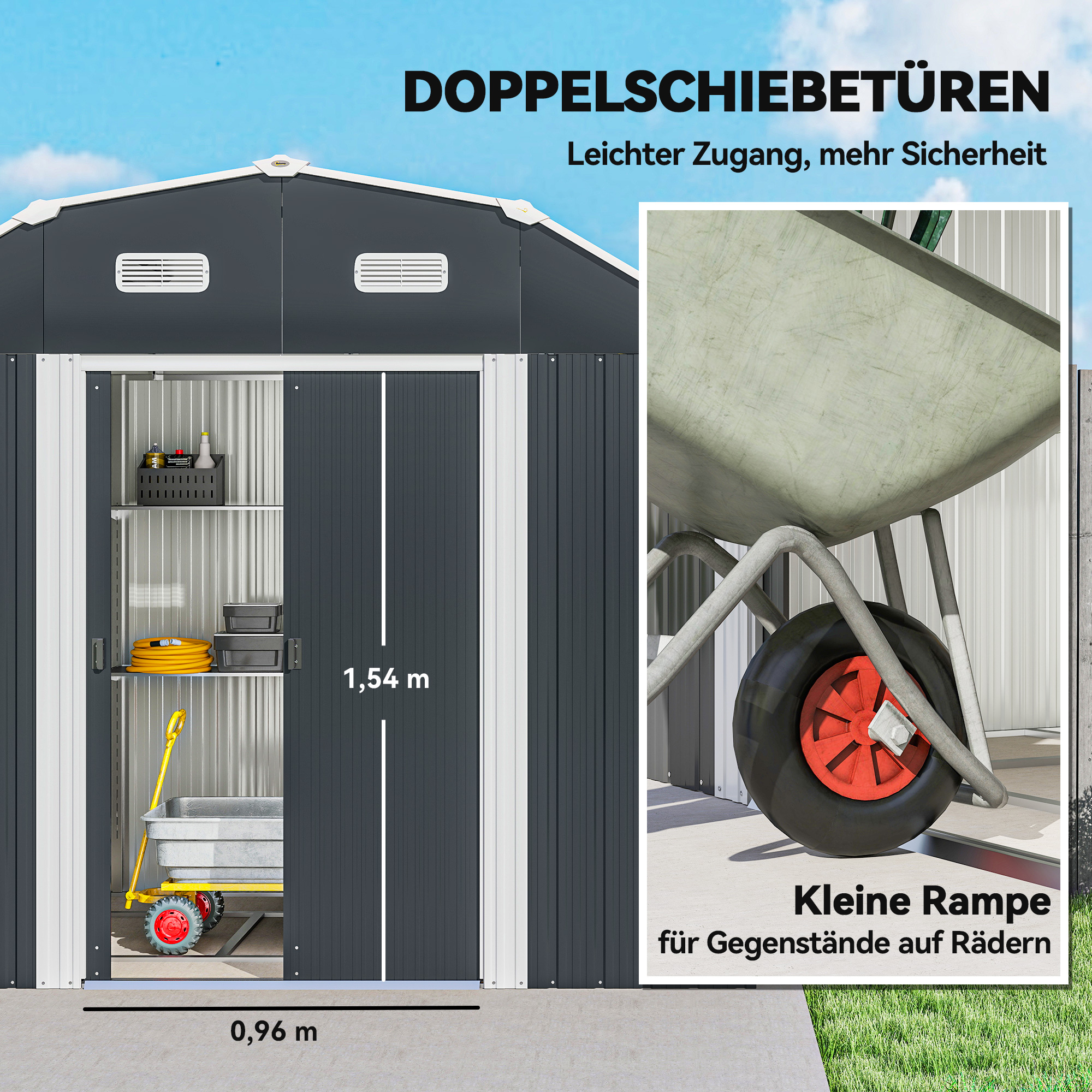 - - Der verzinkte Stahlrahmen des Gartenschuppens ist wasser- und rostbeständig