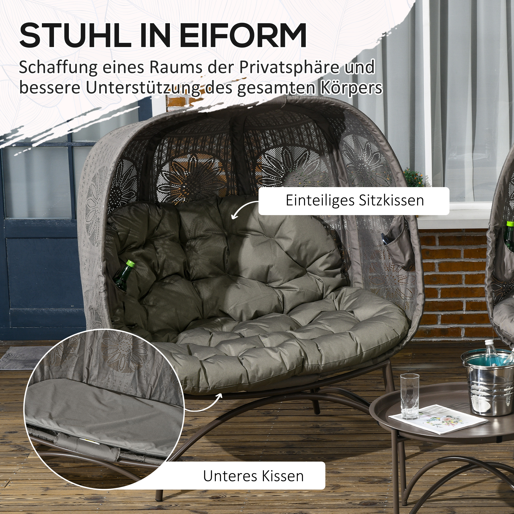 Entspannen Sie stilvoll im Freien auf diesem Korbsessel-Set von Outsunny, Das moderne Design und die hochwertigen Materialien machen Ihre Sitzecke zum Hingucker, Nutzen Sie den Tisch bei Wunsch auch als Hocker für ein Extra an Komfort, Die geschwungene Sitzschale lädt zum Relaxen ein, unterstützt von weichen Sitz- und Rückenkissen, Praktisch: Das Set ist faltbar und leicht zu verstauen, Das stabile Metallgestell bietet sicheren Halt, Gönnen Sie sich puren Komfort im Freien!