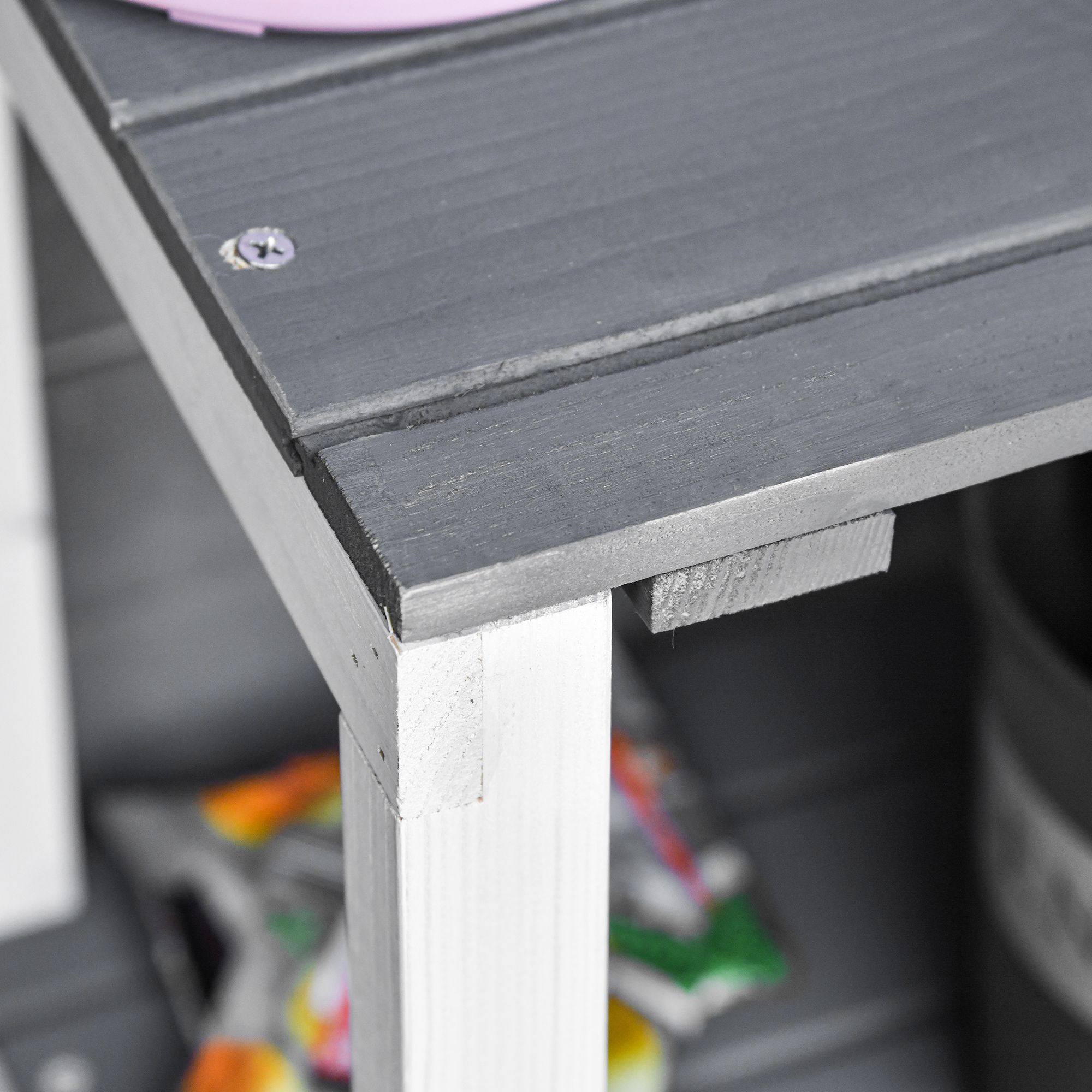 Produktinformationen "Gartenschrank Geräteschuppen mit 2 Tür Geräteschrank mit Asphaltdach Gartenlagerschrank Antidumping Design mit Bodennägel Tannenholz Grau+Weiß 139 x 75 x 160 cm"