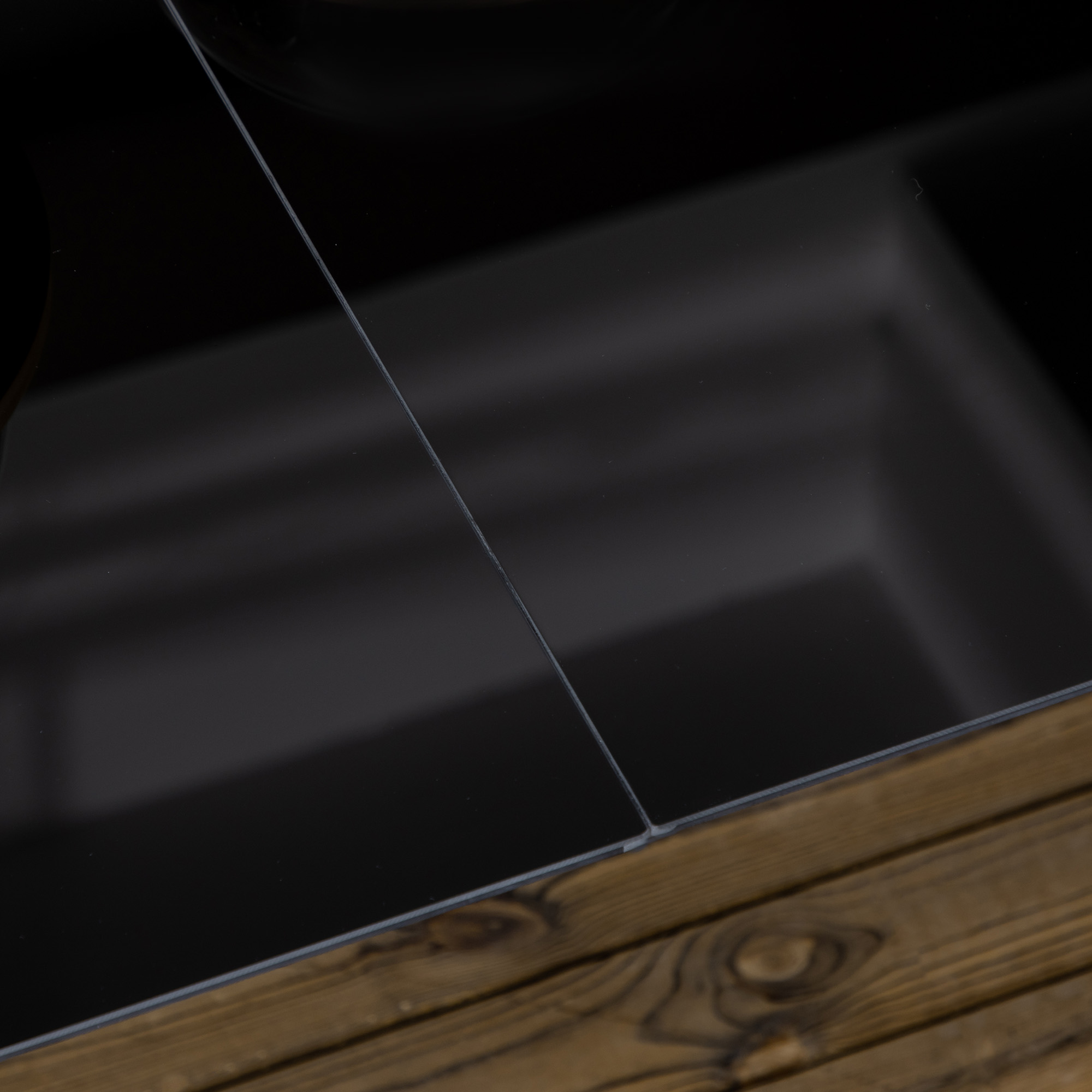 - - Schwarzes Glasplatte und ein minimalistisches Design für einen modernen Look, ideal für den Einsatz im Innen- und Außenbereich