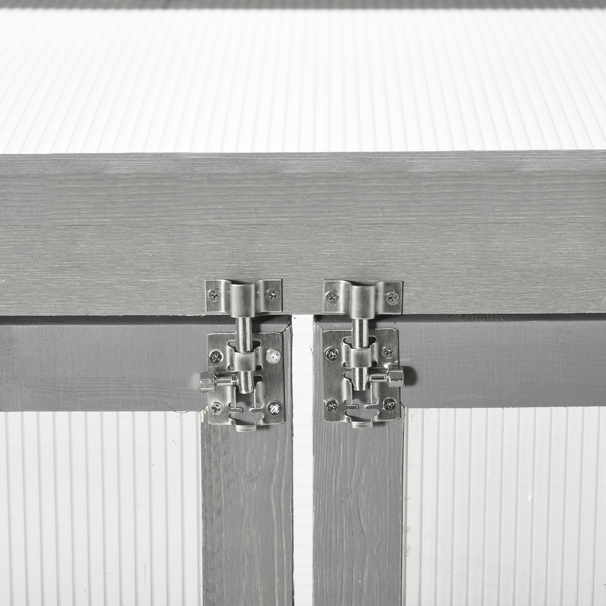 Ziehen Sie Ihren eigenen kleinen Garten mit Leichtigkeit in diesem handlichen und funktionalen Gewächshaus von Outsunny auf, Die transparenten und stabilen Polycarbonat-Wände ermöglichen energiereiches Sonnenlicht, um Ihre Pflanzen ungehindert zu erreichen, während die Wärme im Inneren des Gewächshauses eingeschlossen wird, um sie vor Kälte zu schützen, Das klappbare Dach und die geräumige Doppeltür machen die Pflege Ihrer Pflanzen besonders komfortabel,