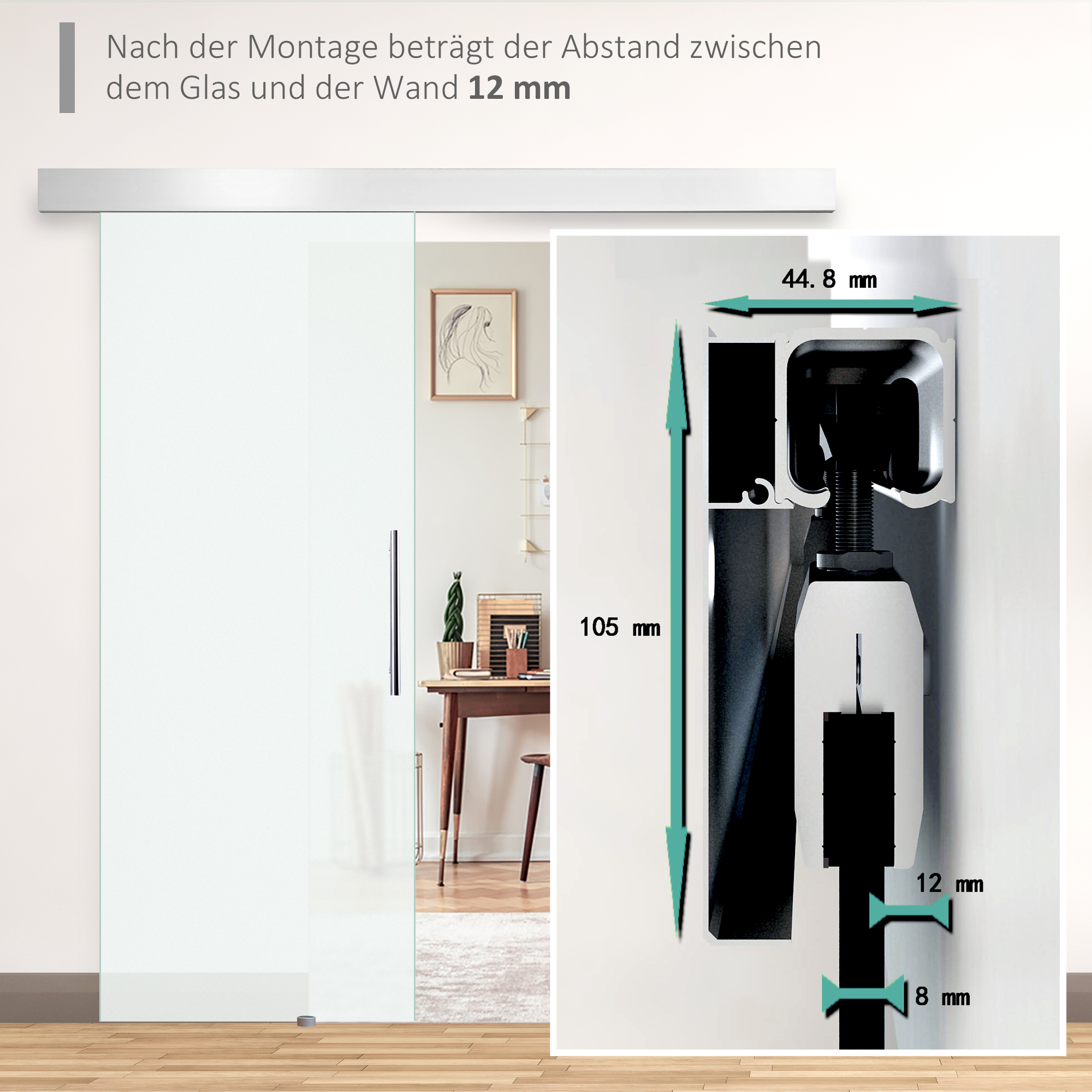- HINWEIS: Geeignet für die Installation an tragenden Wänden, die Innenbodenhöhe darf nicht weniger als 218 cm betragen, Nach der Installation beträgt der Abstand zwischen der Glastür und der Wand 12 mm