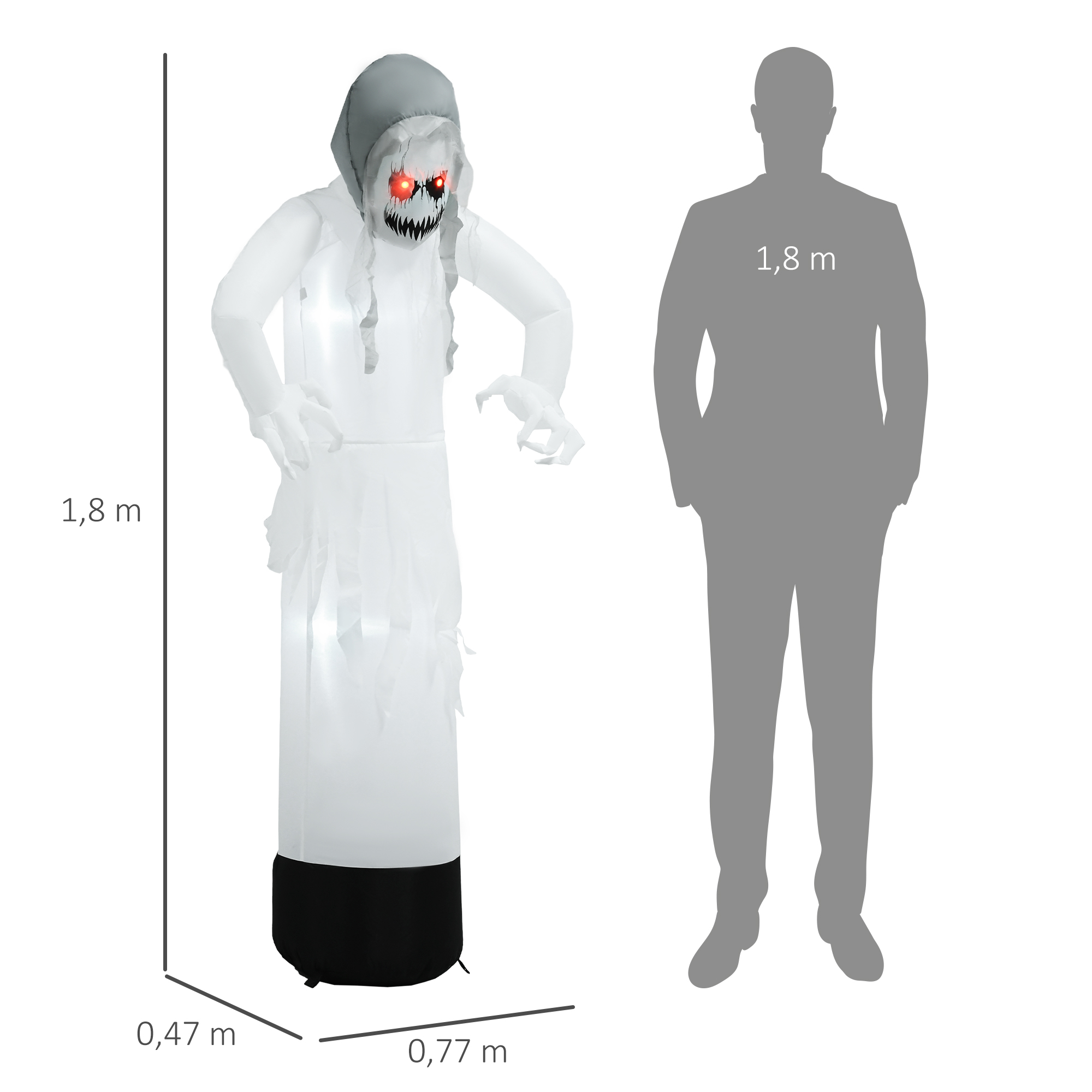 Halloweendeko, Geisterhexe mit roten Augen, aufblasbar, LEDs, Outdoor-tauglich, 180 cm, Weiß