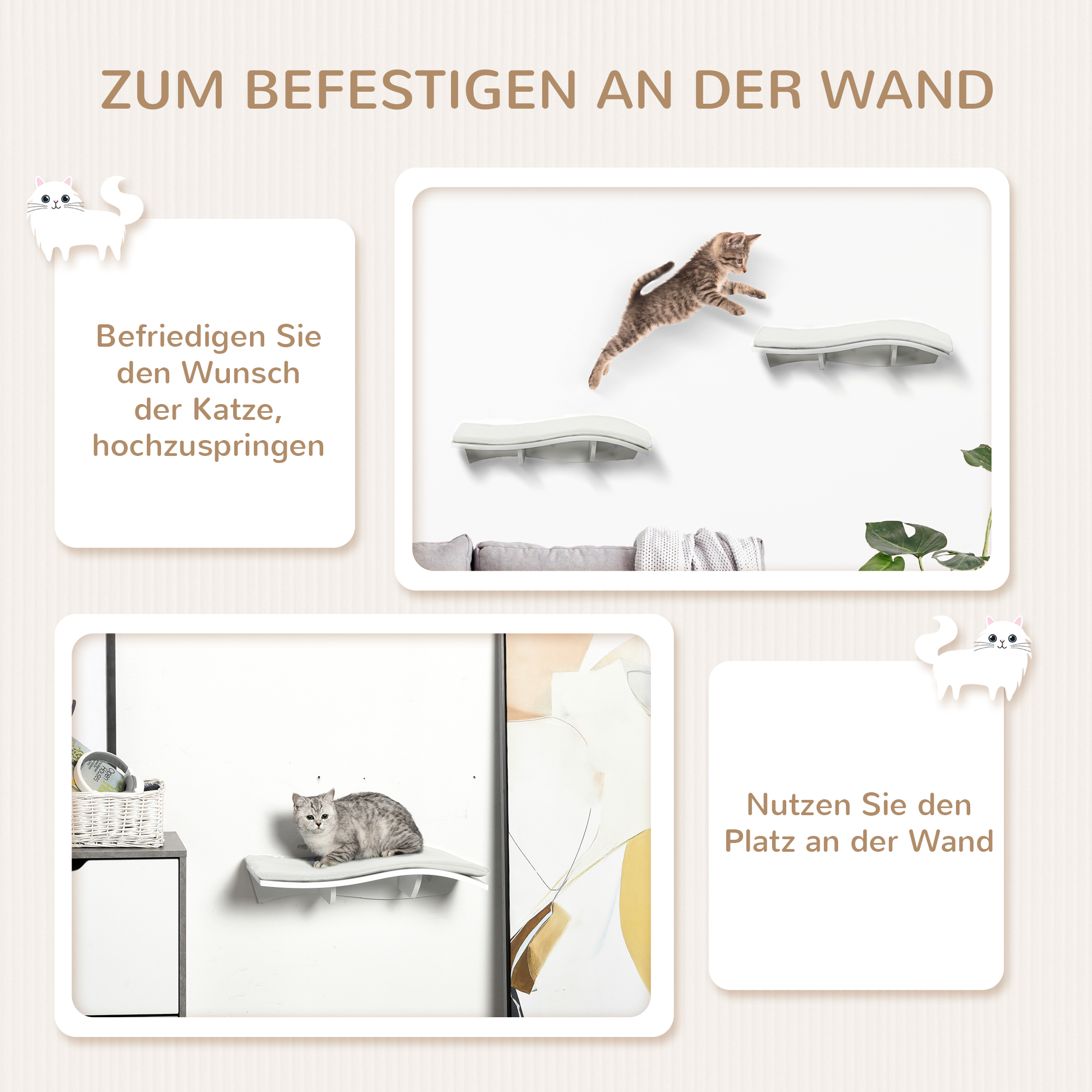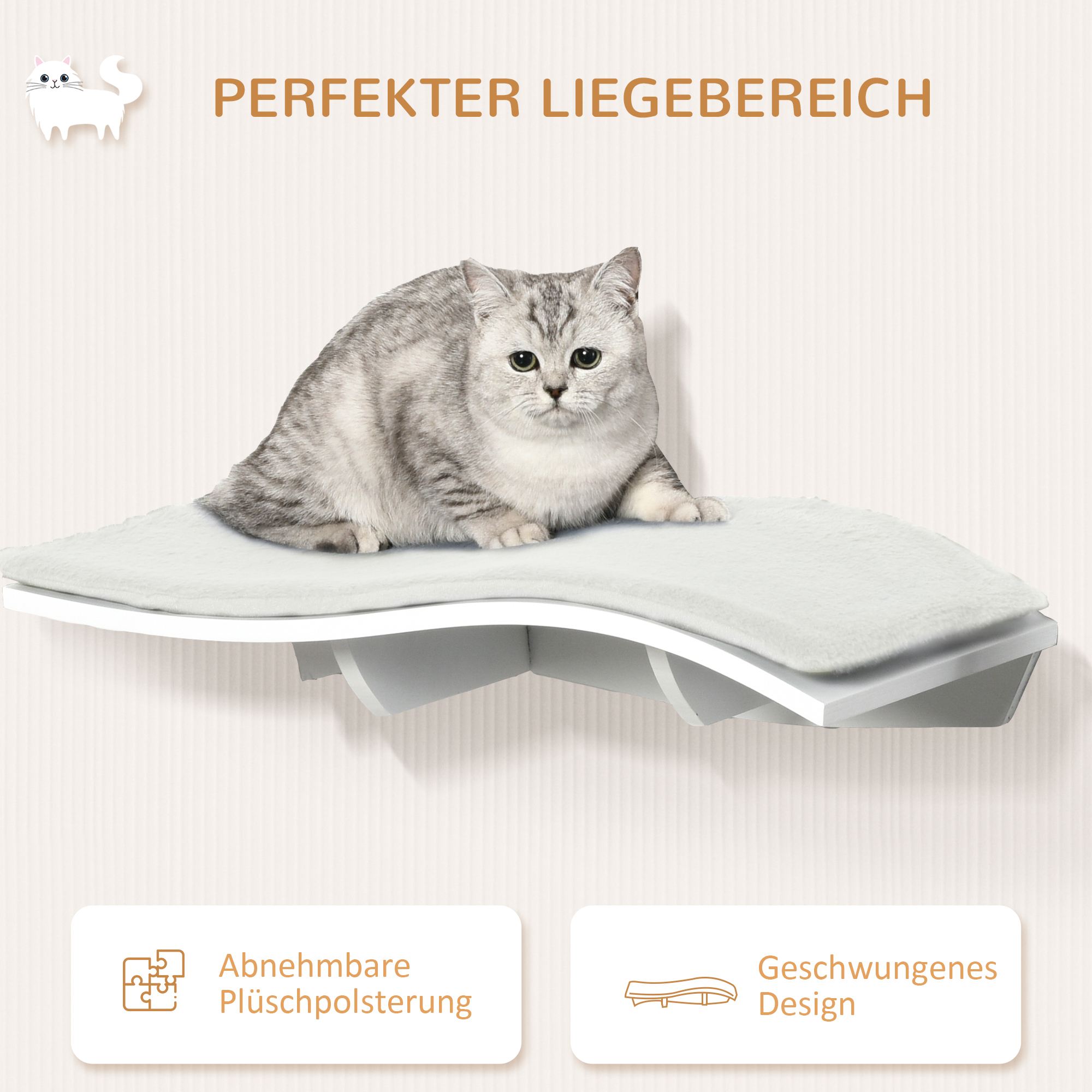 Katzen Kletterwand Katzenhängematte Katzenbett Wand Katzenregal Wandmontage Katzenmöbel Plüsch MDF Weiß 53 x 28 x 12 cm