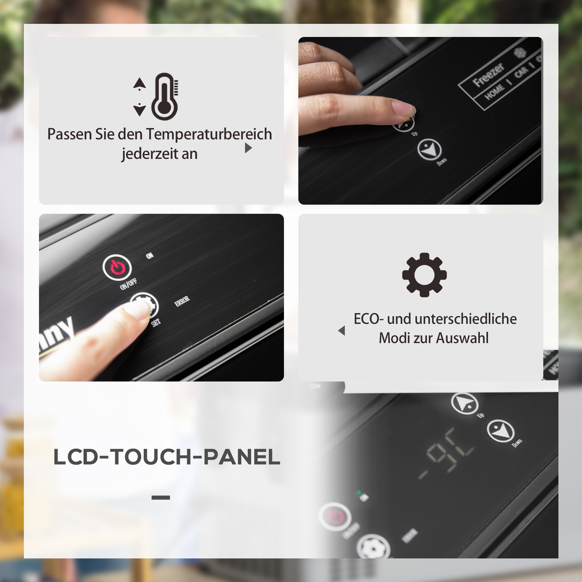 Halten Sie Lebensmittel, Getränke und Snacks mit dem tragbaren Kühlschrank von Outsunny eiskalt oder gefroren, egal ob Sie den Tag am Strand verbringen, mit Freunden campen gehen oder ein schönes Picknick im Freien genießen, Dank der digitalen Temperaturanzeige, mit der Sie den elektrischen Thermostat unterwegs einstellen können, können Sie ihn schnell und einfach an Ihre Bedürfnisse anpassen,
