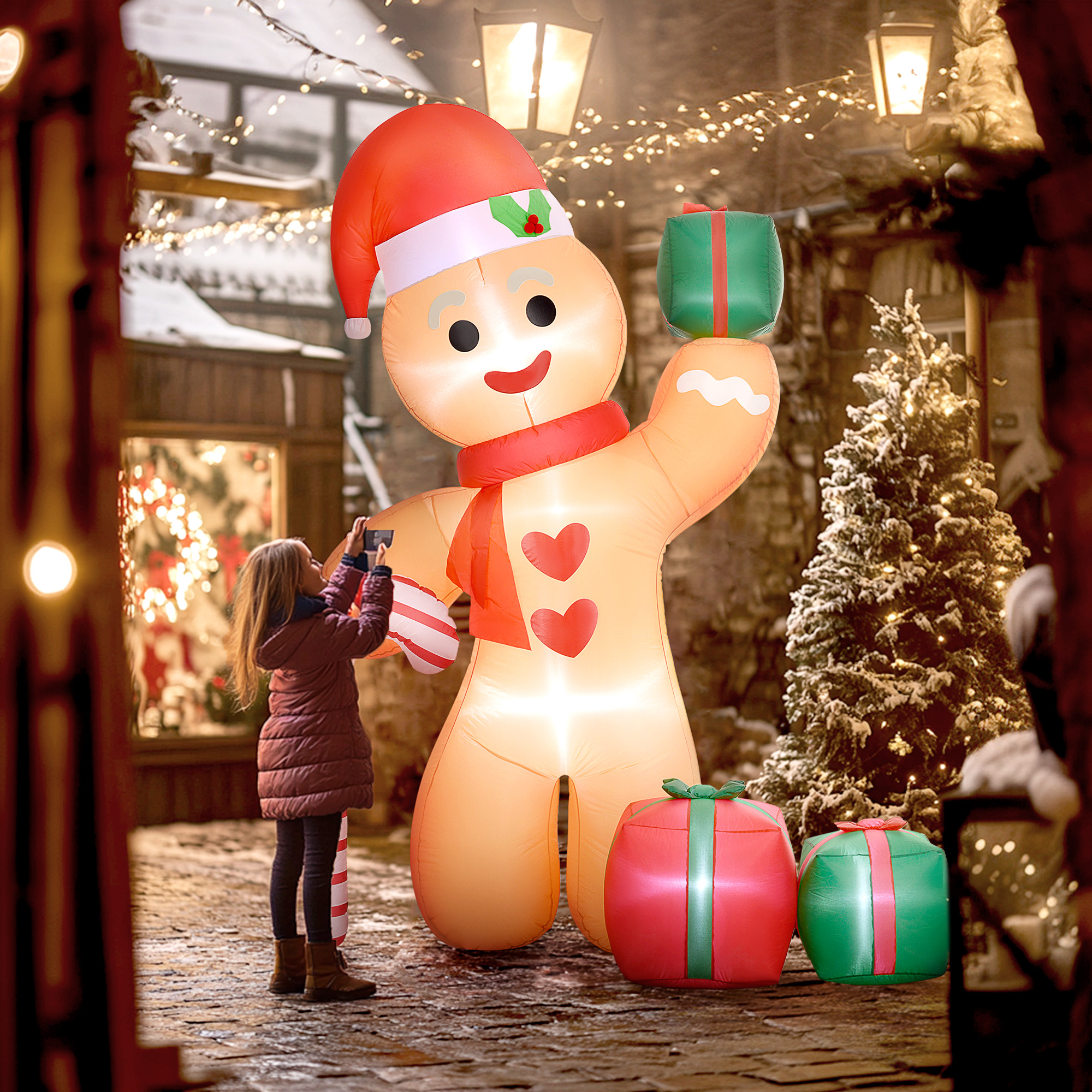 - Typ: Aufblasbarer Lebkuchenmann mit Zuckerstange und drei Geschenken