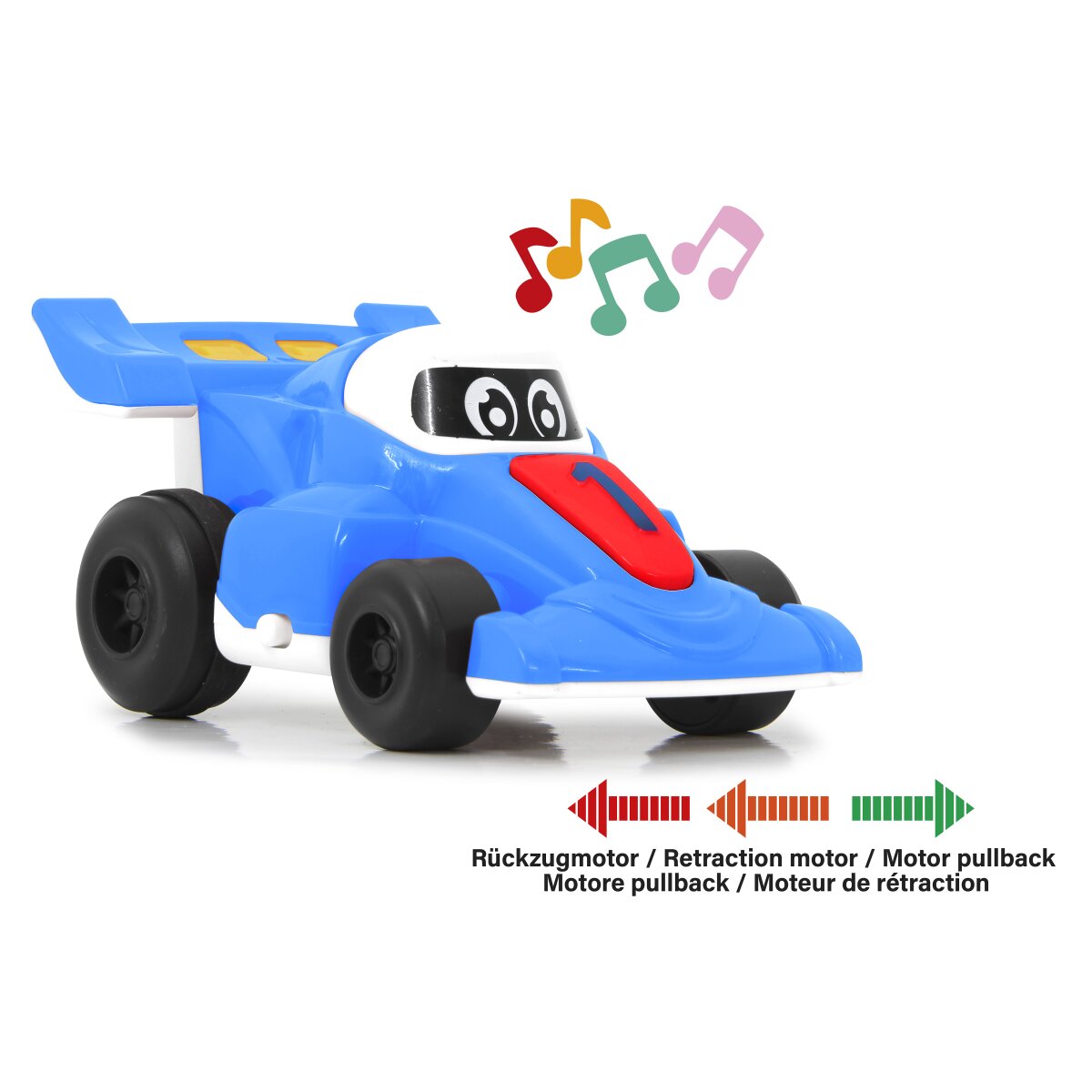 Die bunten My Little Fahrzeuge von Jamara bringen Abwechslung und Spielspaß ins Kinderzimmer. Einfach das Auto zurückziehen und schon spannt sich der Rückzugsmotor. Losgelassen flitzt das Auto los. Die lustigen kleinen Fahrzeuge kommen in zwei Varianten in den Handel. Zum einen ein Rennwagen in rot und blau und zum anderen ein Einsatzwagen ebenfalls in zwei Farben. Alle Fahrzeuge haben eine Taste für Musik, Motorsound und Hupe und können mit ihren lustigen Lichtern blinken. Hochwertiger Kunststoff der an allen Kanten kindgerecht abgerundet und leicht zu reinigen ist runden die Ausstattung dieses liebevoll für den Markt ausgesuchten Kinderspielzeuges ab. My Little-Racer und My Little-Car von JAMARA ist empfohlen für Kleinkinder ab einem Jahr.