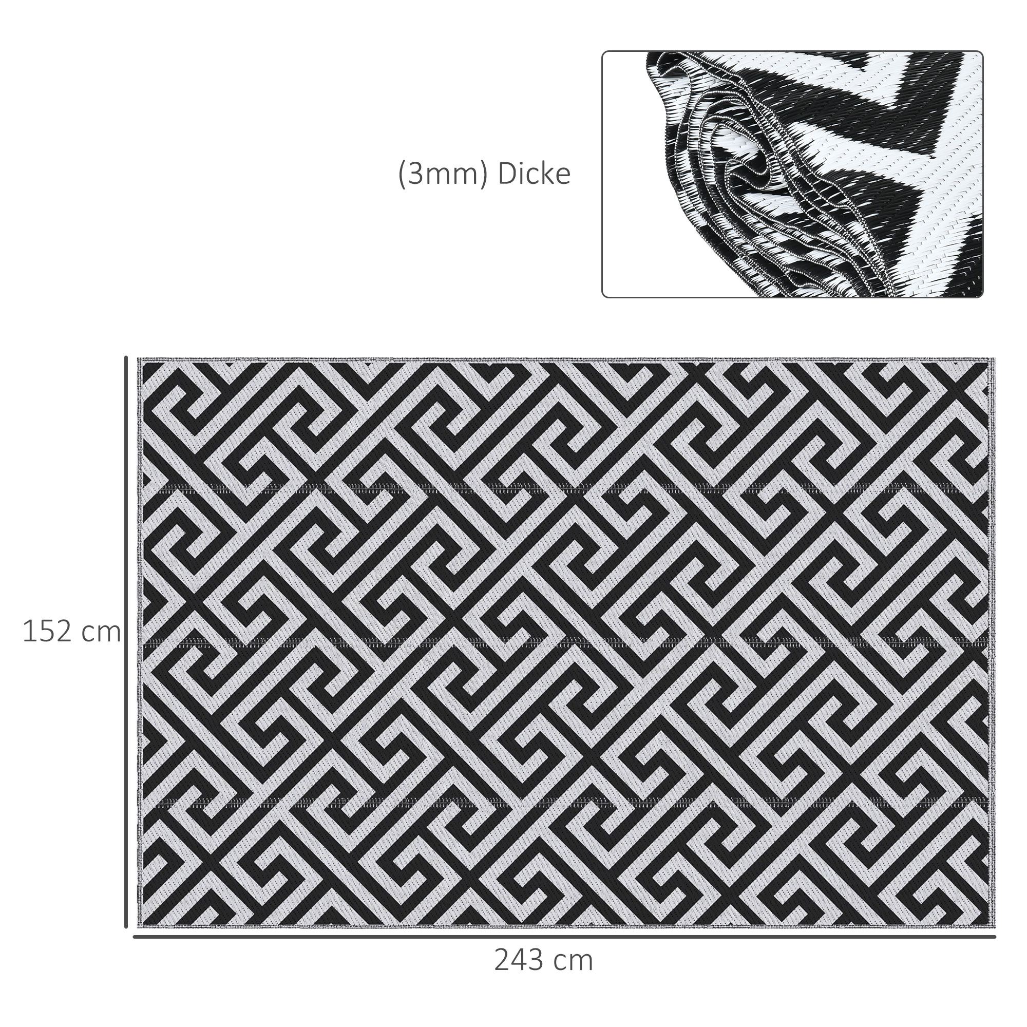 Outdoor-Teppich, beidseitig nutzbar, strapazierfähig, Rand gegen Ausfransen, schwarz+weiß, 152 x 243 cm