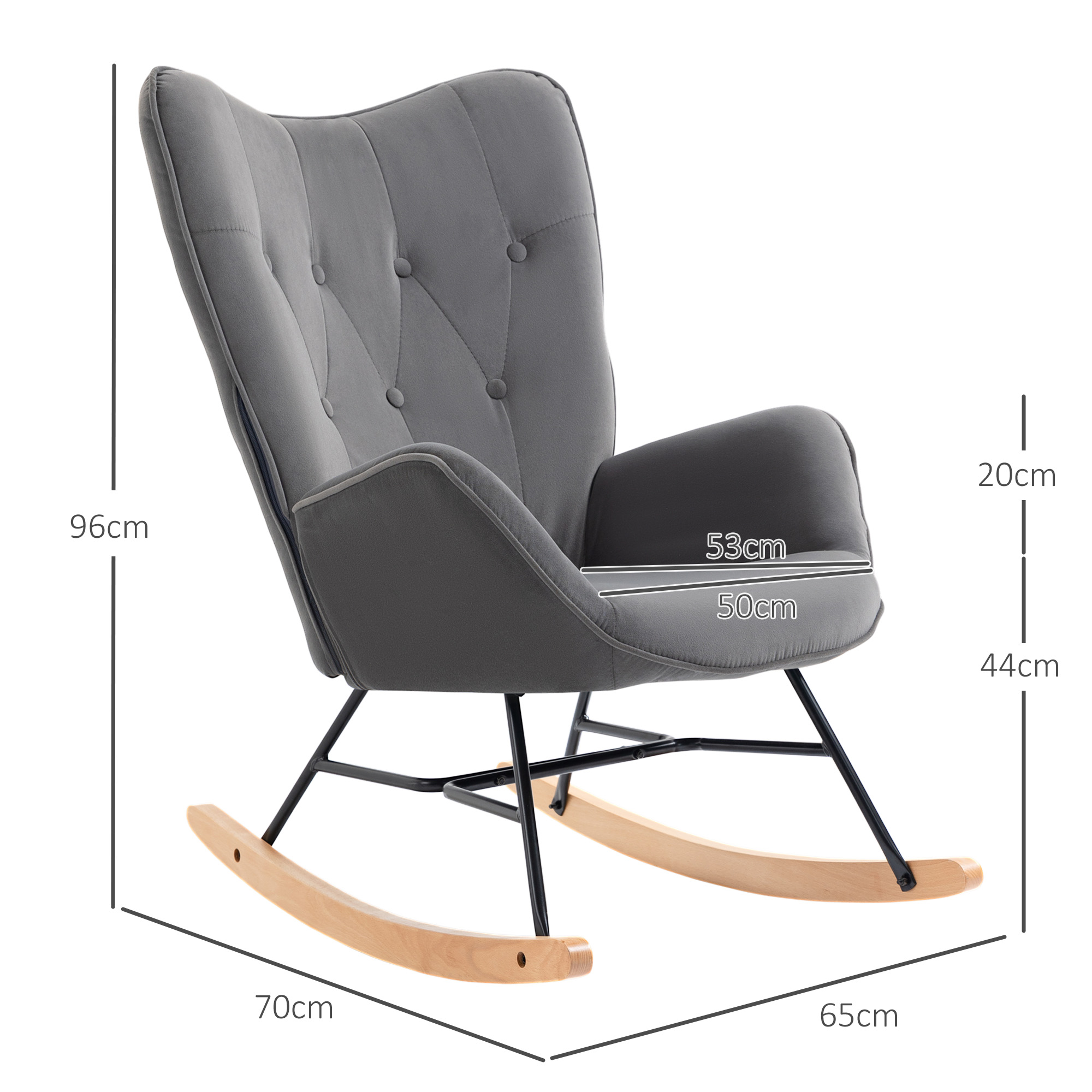 Schaukelstuhl mit Steppung, Holzkufen, Samtoptik, bis 150 kg, Dunkelgrau