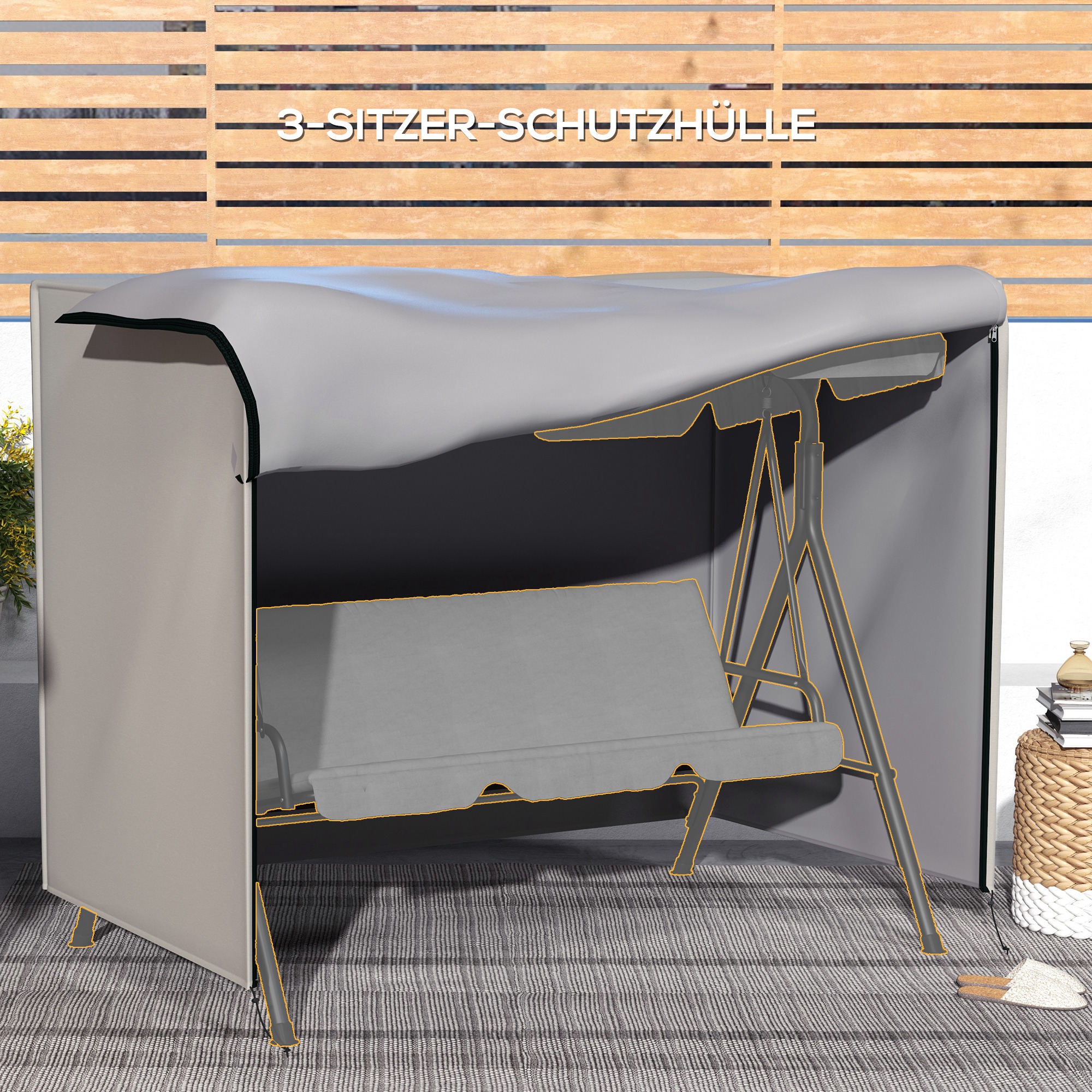 - Sicheres Verstauen: Die Abdeckung für Hollywoodschaukel wird kann am Boden verankert werden, um auch starken Winden zu trotzen