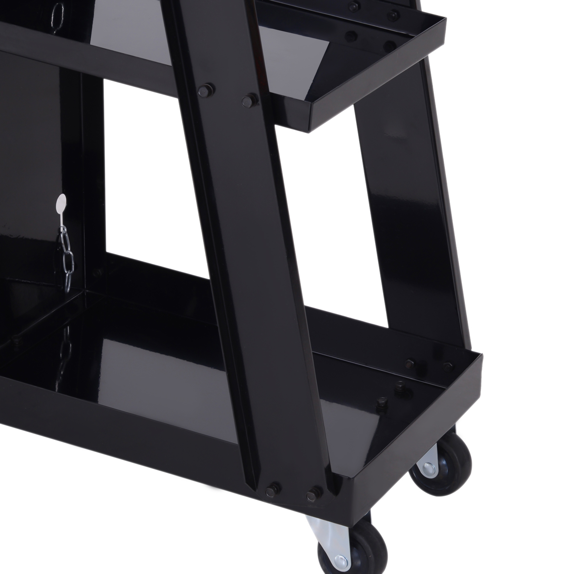 Schweißwagen, 3 Ablagen, Sicherheitskette, 4 Räder, Stahl, 71 x 39 x 70cm, Schwarz