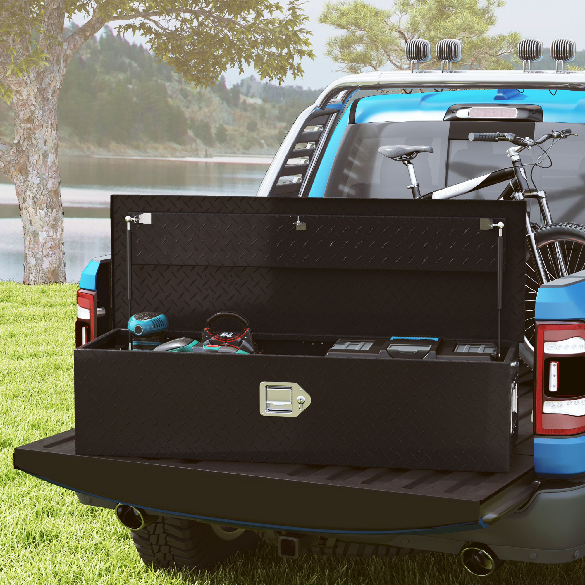 - Robust und leicht: Gefertigt aus verstärktem Aluminium-Diamantblech mit schützender Lackierung, bietet unsere LKW-Aufbewahrungsbox Widerstand gegen Rost, Korrosion und Verschleiß und ist dennoch leicht, um den Anhänger nicht zu beschweren