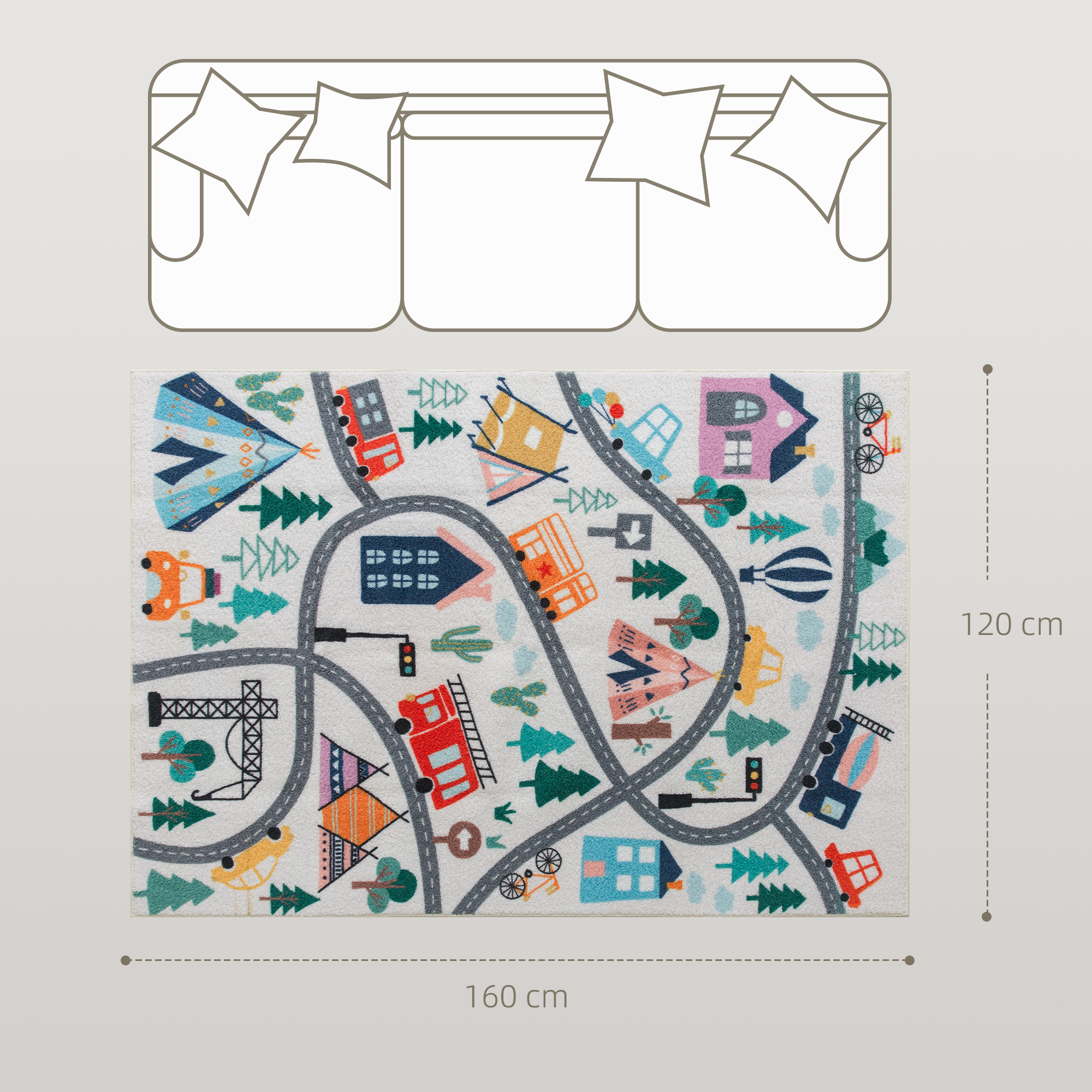 Mit dem Teppich "moderne urbane Autobahn" von HOMCOM bringen Sie Stil in Ihr Zuhause, Lebendige Farben erstrahlen auf einem sanften weißen Hintergrund und verleihen jedem Raum Energie, Spüren Sie das ultraweiche Sherpa-Fleece unter Ihren Füßen, das Ihnen bei jedem Schritt Komfort garantiert, Dank seiner rutschfesten Rückseite ist er eine sichere Ergänzung für Haushalte mit Kindern und älteren Menschen,