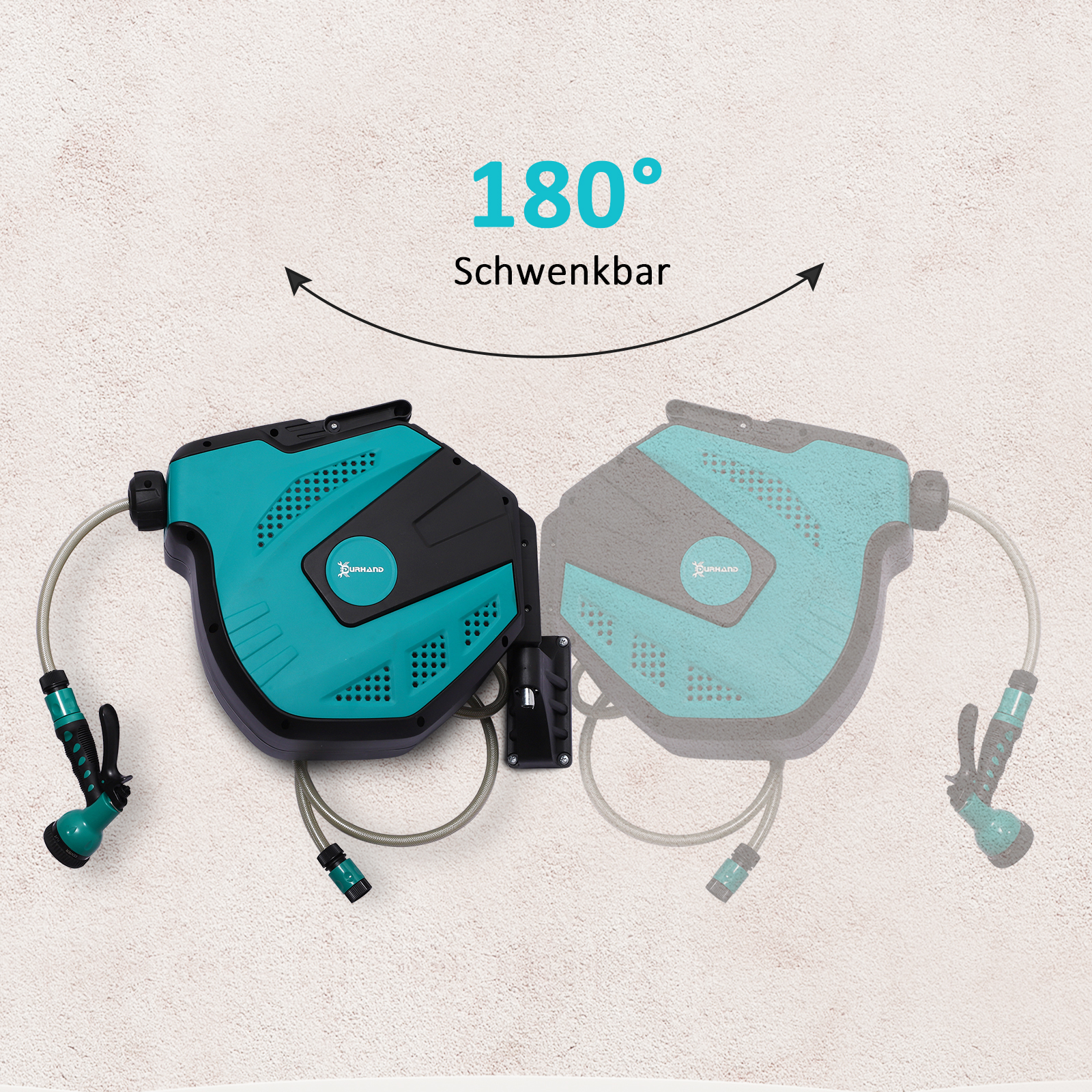 Diese Gartenschlauchtrommel von DURHAND beheimatet einen 15 Meter langen robusten Gartenschlauch, der sich einfach auf- und abrollen lässt, Sie können die gewünschte Länge im Voraus einstellen und dann mit dem Stopper am Gartenschlauch fixieren, Hier verknotet sich bestimmt nichts mehr! Der bewegliche Gartenschlauchabroller bewegt sich mit Ihnen mit, sodass Sie in alle Richtungen arbeiten können, ohne dass der Gartenschlauch abknickt, Dank der wunderbaren Frostschutzfunktion können Sie mit der Multibrause auch bei bis zu -5 °C im Garten die Pflanzen gießen oder das Auto waschen,