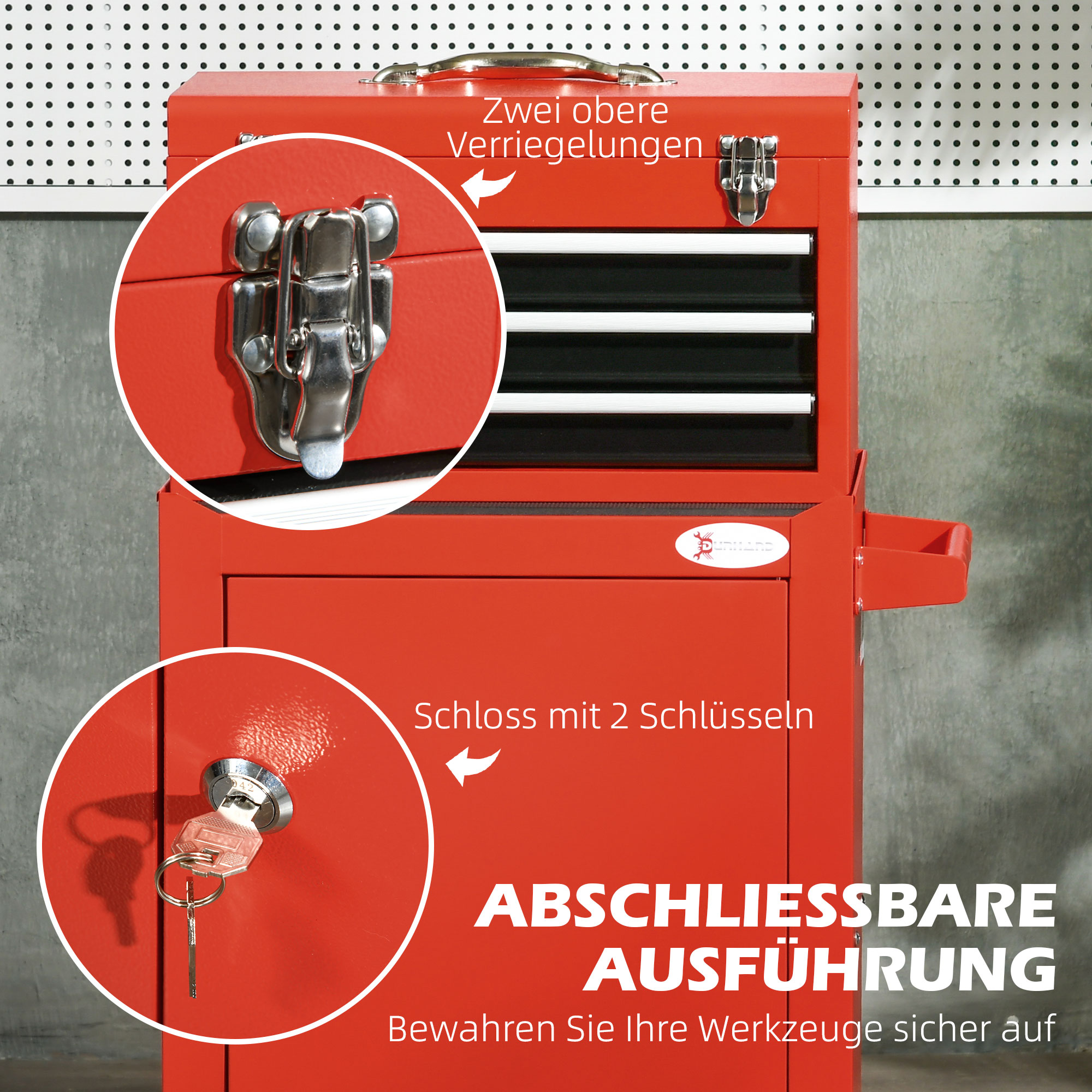 Entdecken Sie den DURHAND 2-in-1 Werkzeugwagen - ein vielseitiger Begleiter für Ihre Werkzeugaufbewahrung, Das abnehmbare Design ermöglicht die Nutzung als tragbare Werkzeugkiste oder rollender Werkzeugschrank, Mit reichlich Stauraum, durchdachtem Design und robuster Konstruktion wird diese Werkzeugkombination jedes Fleckchen, wo sie steht, in eine Miniwerkstatt verwandeln, Schützen Sie Ihre Werkzeuge sicher und organisiert in jedem Arbeitsumfeld,