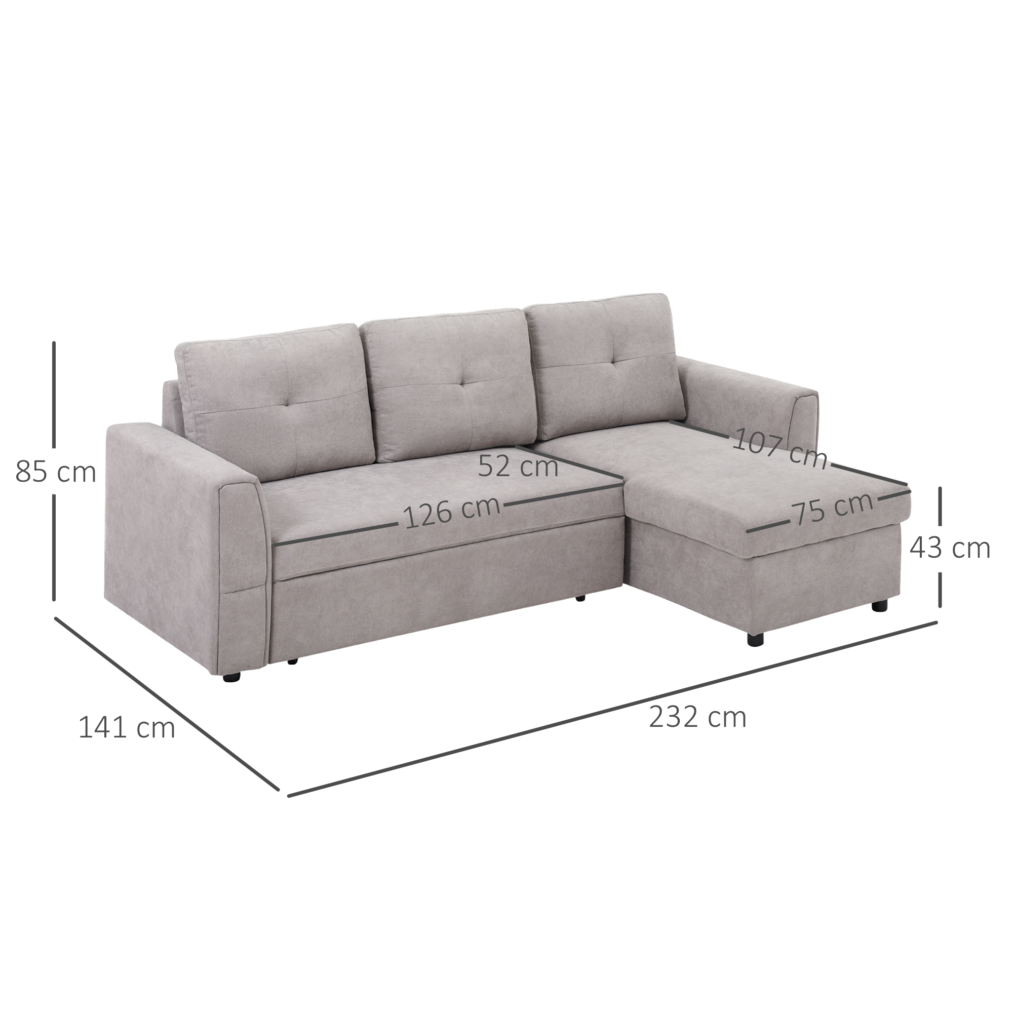 Tauchen Sie ein in Komfort und bringen Sie Stil in Ihr Zuhause mit diesem Klick-Klack-Sofabett von HOMCOM, Es ist als Dreisitzer geräumig und verfügt über ein 'L'-förmiges Eckdesign für mehr Beinfreiheit - ideal zum Entspannen, Mit dickem Schaumstoff gepolstert, lässt es sich zudem in ein Liegesofabett umwandeln, um Gästen eine bequeme Schlafmöglichkeit zu bieten, Der praktische Stauraum unter dem Sitz hält Ihr Zuhause ordentlich und aufgeräumt,