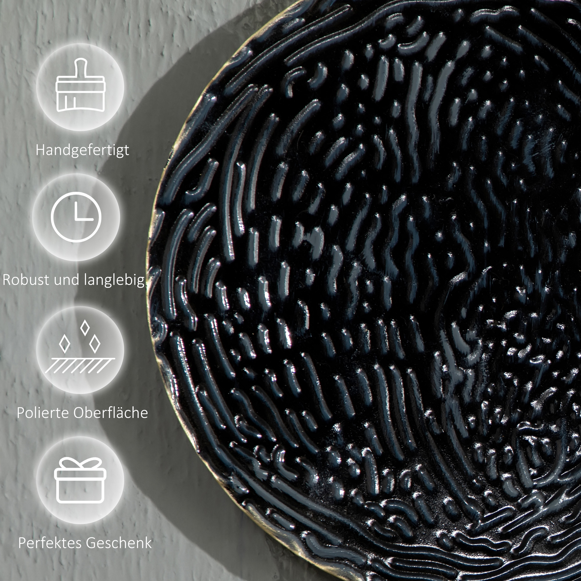 • 3D-Wanddekoration: Mit einem dreidimensionalen Effekt, handgemalte blaue, goldene und schwarze Kreise mit gewellter Oberfläche, verkörpert einen modernen Look, der nie aus der Mode kommen wird