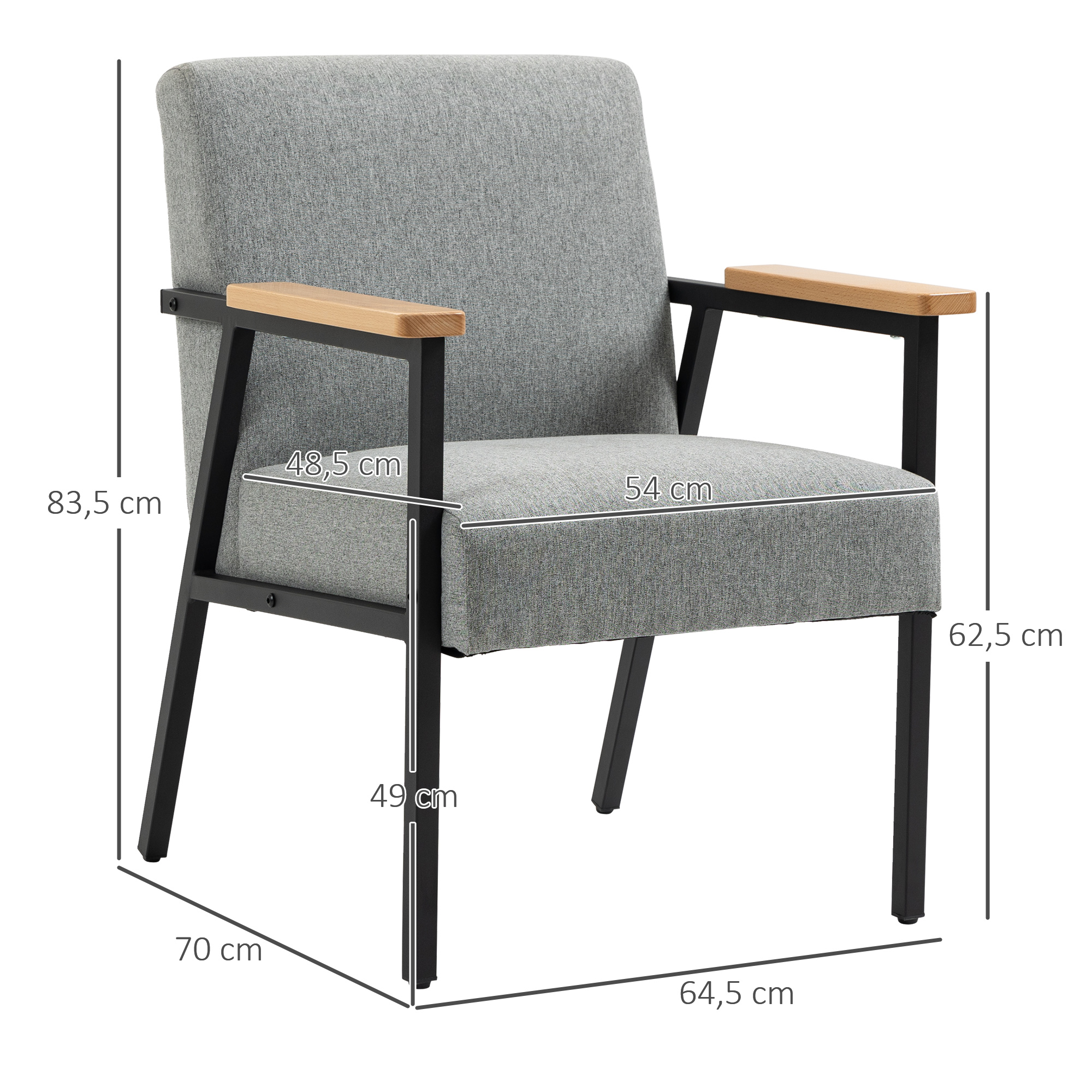 Verwenden Sie diesen komfortablen Akzentstuhl als bequeme Sitzgelegenheit in Ihrer Wohnzimmerecke, im Gästezimmer oder im Arbeitszimmer oder als zusätzlichen Stuhl für Gäste, Die breiten Armlehnen aus Holz und die dick gepolsterte Sitz- und Rückenflächen sorgen für einen optimalen Sitzkomfort, Die Konstruktion besteht aus einem stabilen Metallrahmen, Armlehnen aus Gummiholz sorgen nicht nur für Eleganz, sondern auch für Komfort, Lehnen Sie sich zurück und entspannen Sie sich in diesem Akzentstuhl von HOMCOM,