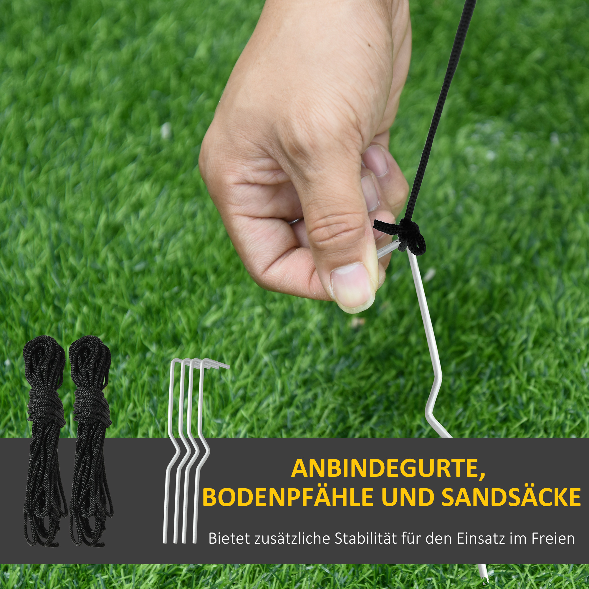 - Starke Befestigung: 4 Heringe und 2 Befestigungsseile zur Fixierung im Boden