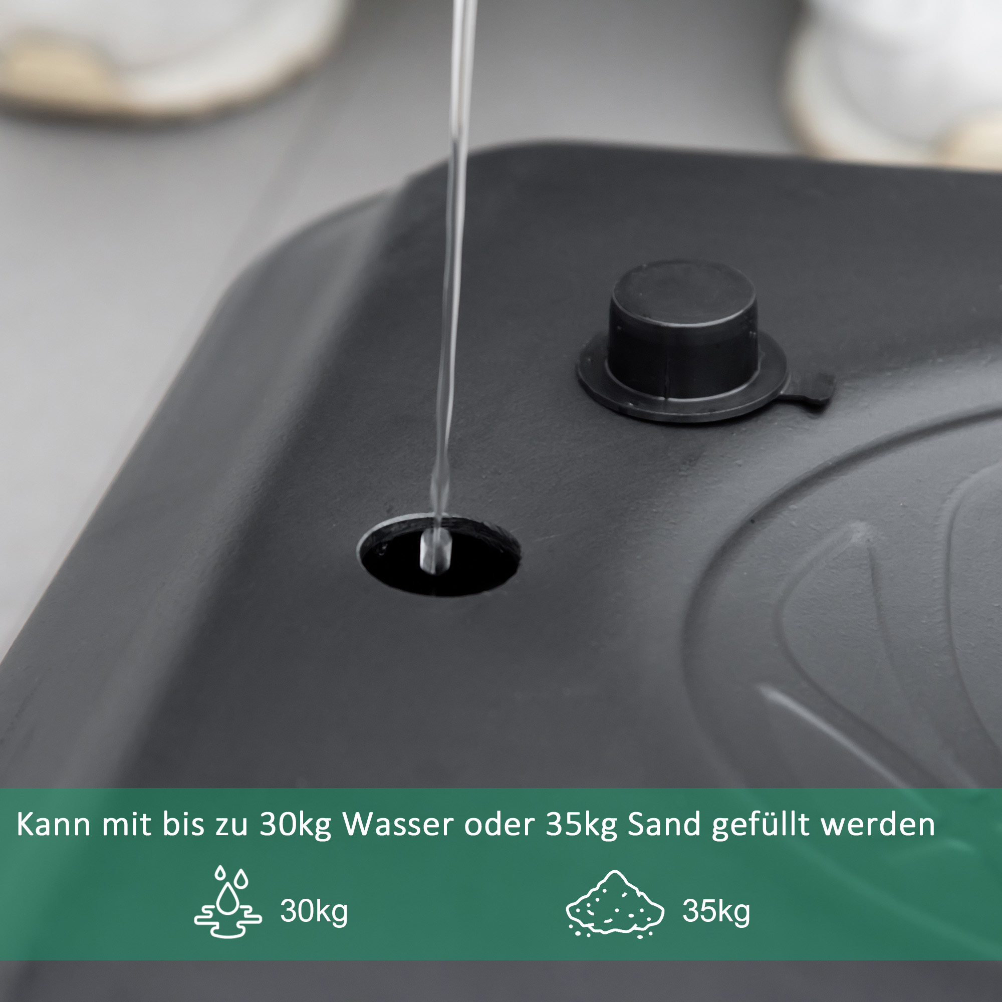 - - Der Standfuß kann mit 30 kg Wasser oder 35 kg Sand gefüllt werden, um die Stabilität zu erhöhen