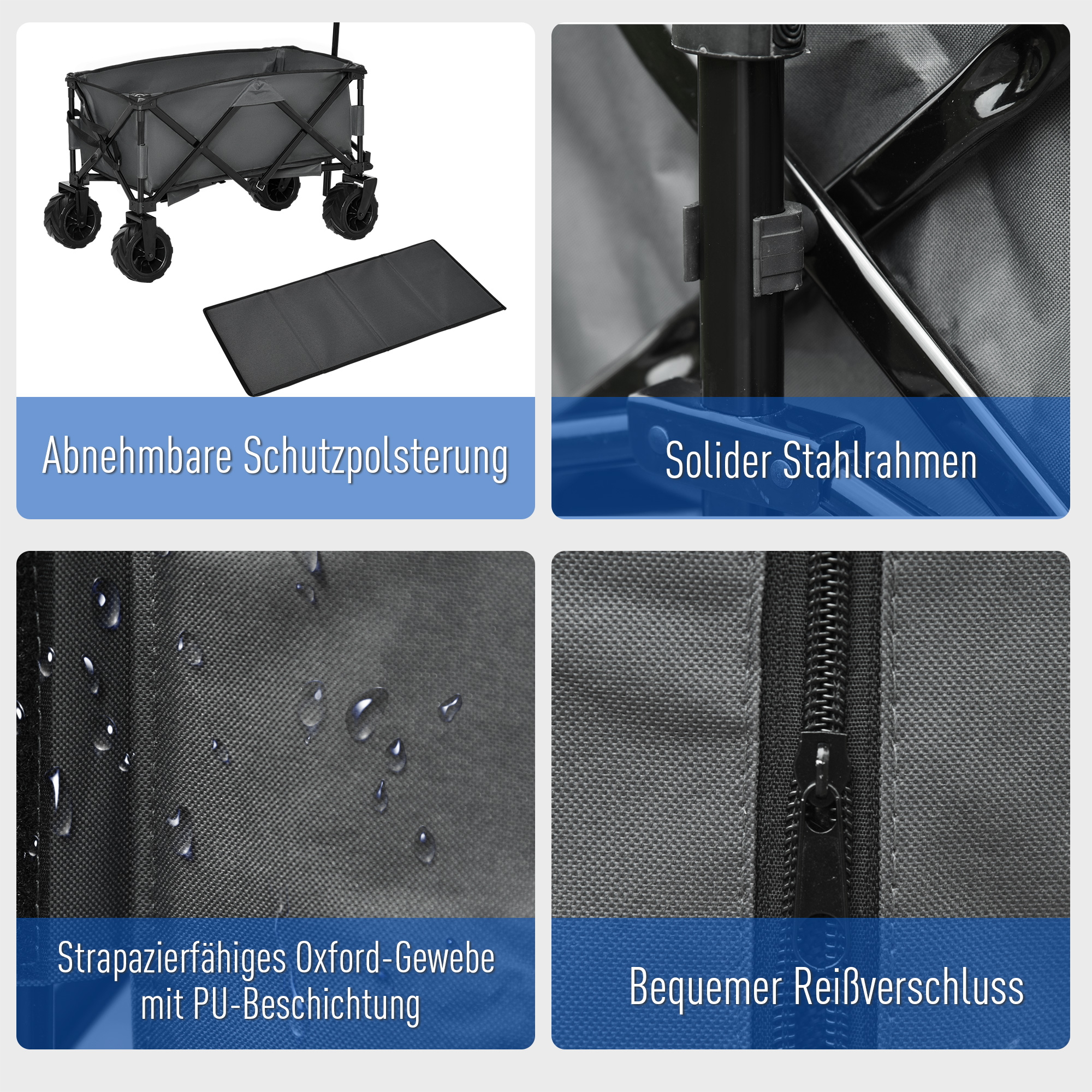 Bollerwagen Faltbarer Handwagen 360° Gartenwagen Transportwagen mit Teleskop Griff Verstellbarer Griffhöhe Strandwagen bis 70 kg Tragkraft Metall Oxford Dunkelgrau 108 x 55 x 59-89 cm