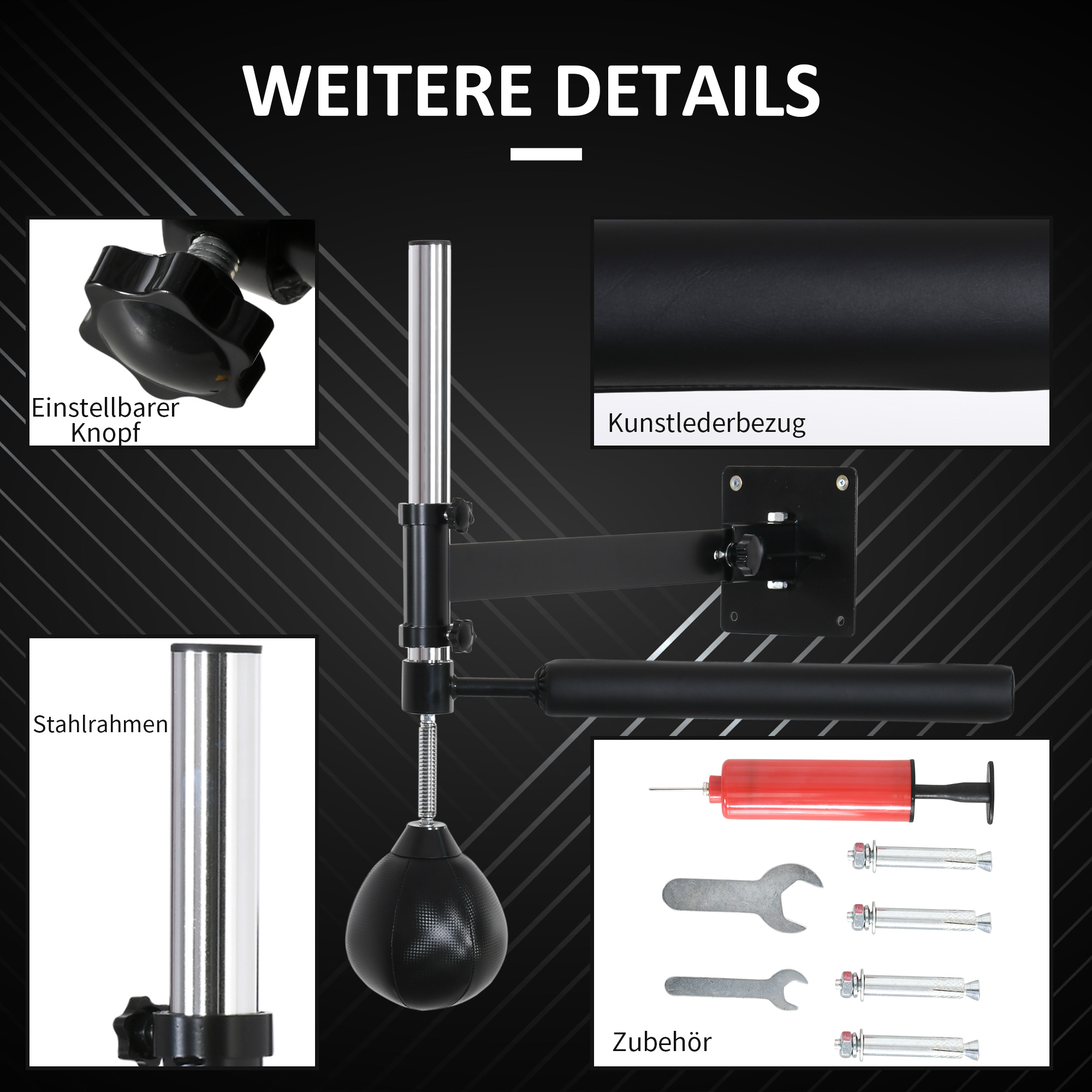 Trainieren Sie Ihre Fitness und Ausdauer mit diesem raffinierten Boxgestell von HOMCOM! Die rotierende Stange und der Punchingball wurden entwickelt, um Ihre Hand- und Augenkoordination, Ihr Timing, Ihre Reflexe und Ihre Fußarbeit zu verbessern, Egal, ob Sie ein Boxer oder ein Fitness-Enthusiast sind, dieses großartiges Gerät wird Sie fordern und auf ein neues Level bringen, Dank der verstellbaren Höhe lässt sich das Gestell an unterschiedlichste Trainingsbedürfnisse anpassen,