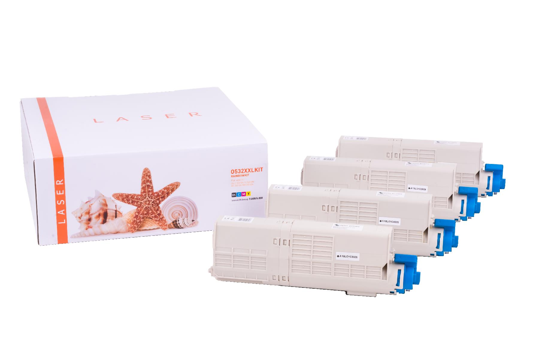 C532XXLKIT alternativ Toner Rainbowkit für Oki / 4649060846490605 / BK7.000 / CMY6.000 Seiten