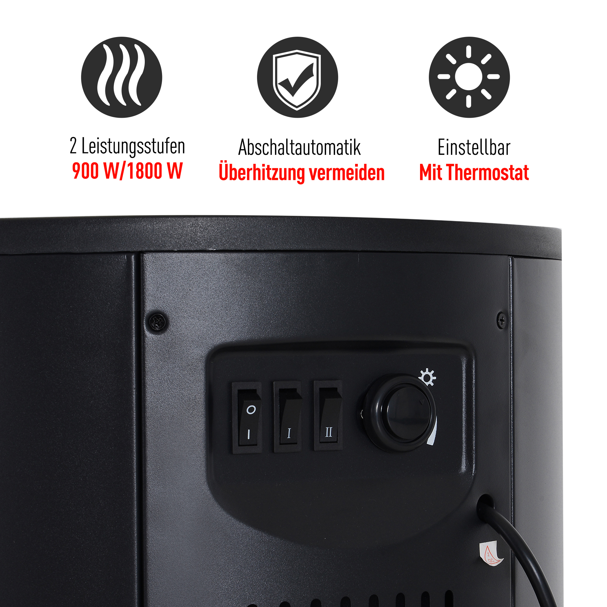 - - Mit Flammeneffekt durch LED, separat von der Heizfunktion einstellbar