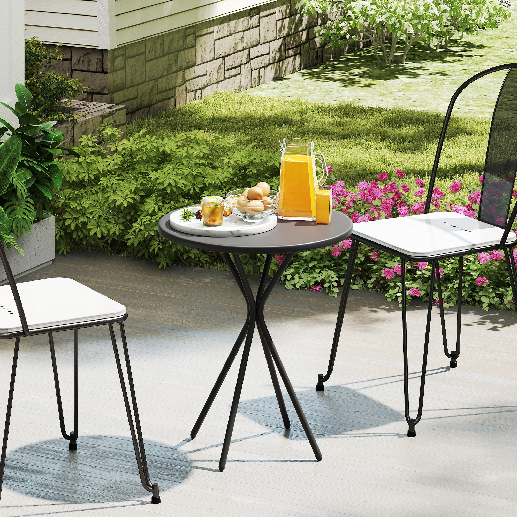Erleben Sie den Genuss des Outdoor-Essens mit dem Outsunny kleinen Gartentisch, Dieser stilvolle und praktische runde Gartentisch bietet eine runde 60 cm Tischplatte mit viel Platz und sicheren, abgerundeten Kanten, Dank seiner starken Metallplatte und des pulverbeschichteten Stahlrahmens hält er bis zu 50 kg, Fußpolster schützen vor Kratzern auf allen Untergründen, Perfekter Terrassentisch für jedes Outdoor-Ambiente!