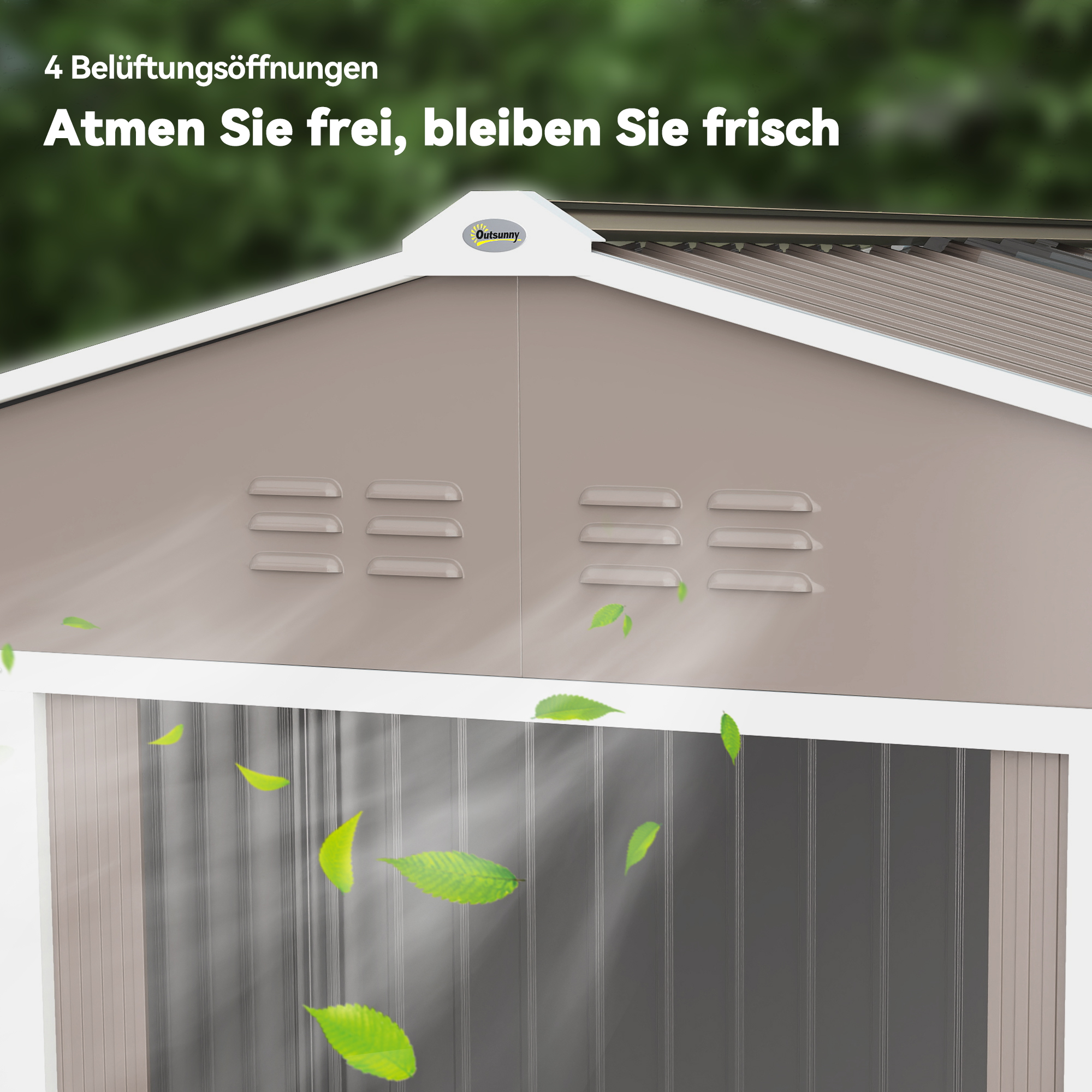 Geräteschuppen aus Metall mit Schiebetüren und Belüftungsfenstern, 277 x 195 x 192 cm, Hellgrau