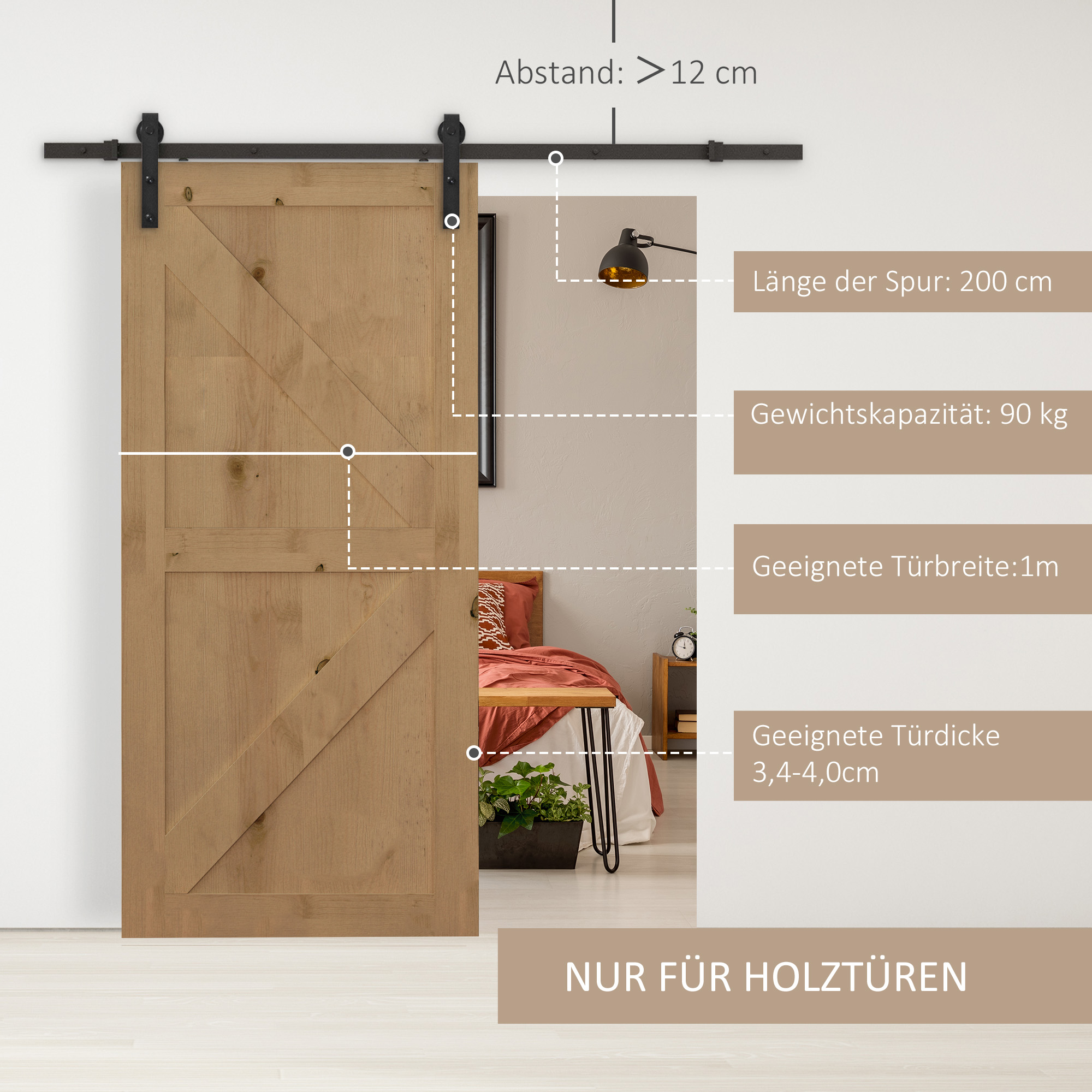 Verleihen Sie einer Tür in Ihrem Heim mit diesem großartigen rustikalen Schiebetürbeschlag-Kit von HOMCOM einen einzigartigen Charakter, Tauschen Sie herkömmliche Türen gegen eine stilvolle, praktische Tür aus und verwandeln Sie so den Look eines ganzen Raumes, Das Schiebetürsystem lässt sich von Schlafzimmern über Wohnzimmer und weiteren Räumen installieren, Gefertigt aus robustem Kohlenstoffstahl, hält es hohem Gewicht stand, Montage an Holz- oder Betonwänden möglich, Tür nicht inklusive,