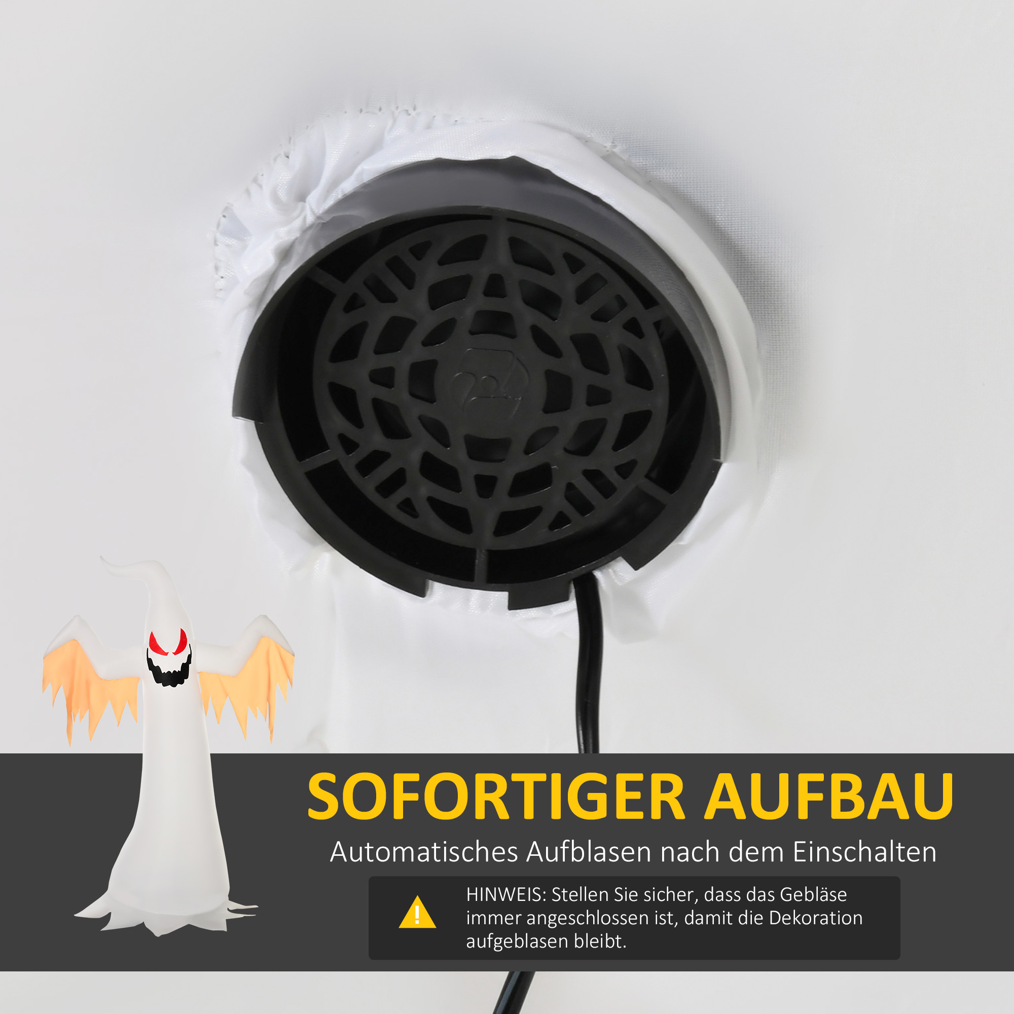 Halloween aufblasbares Gespenst 2,4 m Dekoration mit LEDs IP44 Selbstaufblasender Polyester Weiß + Rot 150 x 80 x 240 cm
