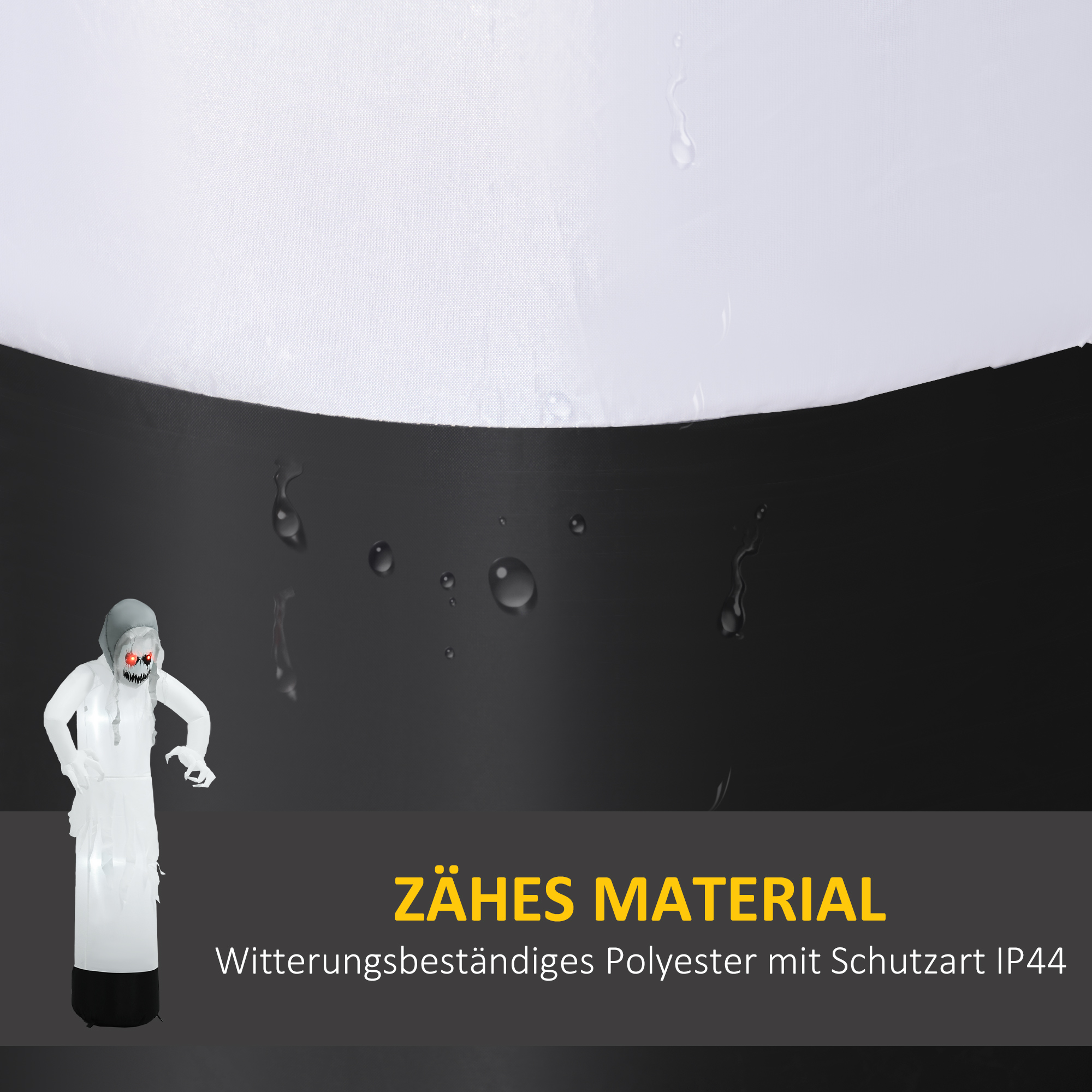 Halloweendeko, Geisterhexe mit roten Augen, aufblasbar, LEDs, Outdoor-tauglich, 180 cm, Weiß