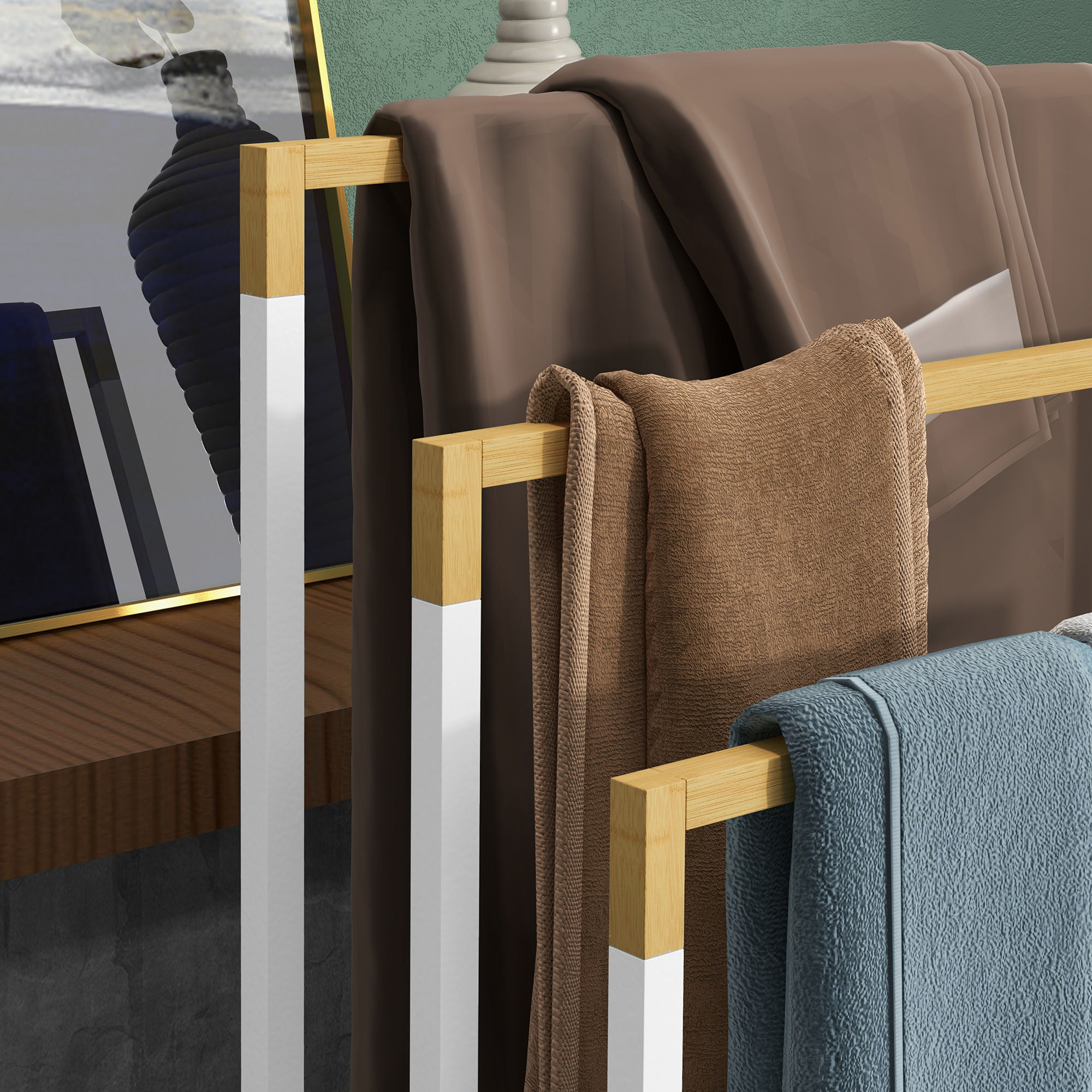 Hängen Sie Ihre Handtücher an diesen praktischen Handtuchhalter mit 3 Schienen von kleankin, Der Handtuchhalter besteht aus robustem Bambus und Metall für ein natürliches Aussehen und ist für den täglichen Gebrauch geeignet, während die Kleiderstangen des Handtuchständers aus robustem, leicht zu reinigendem Bambus gefertigt sind, Durch sein frei stehendes Design kann er neben der Dusche, der Badewanne oder wo auch immer aufgestellt werden,