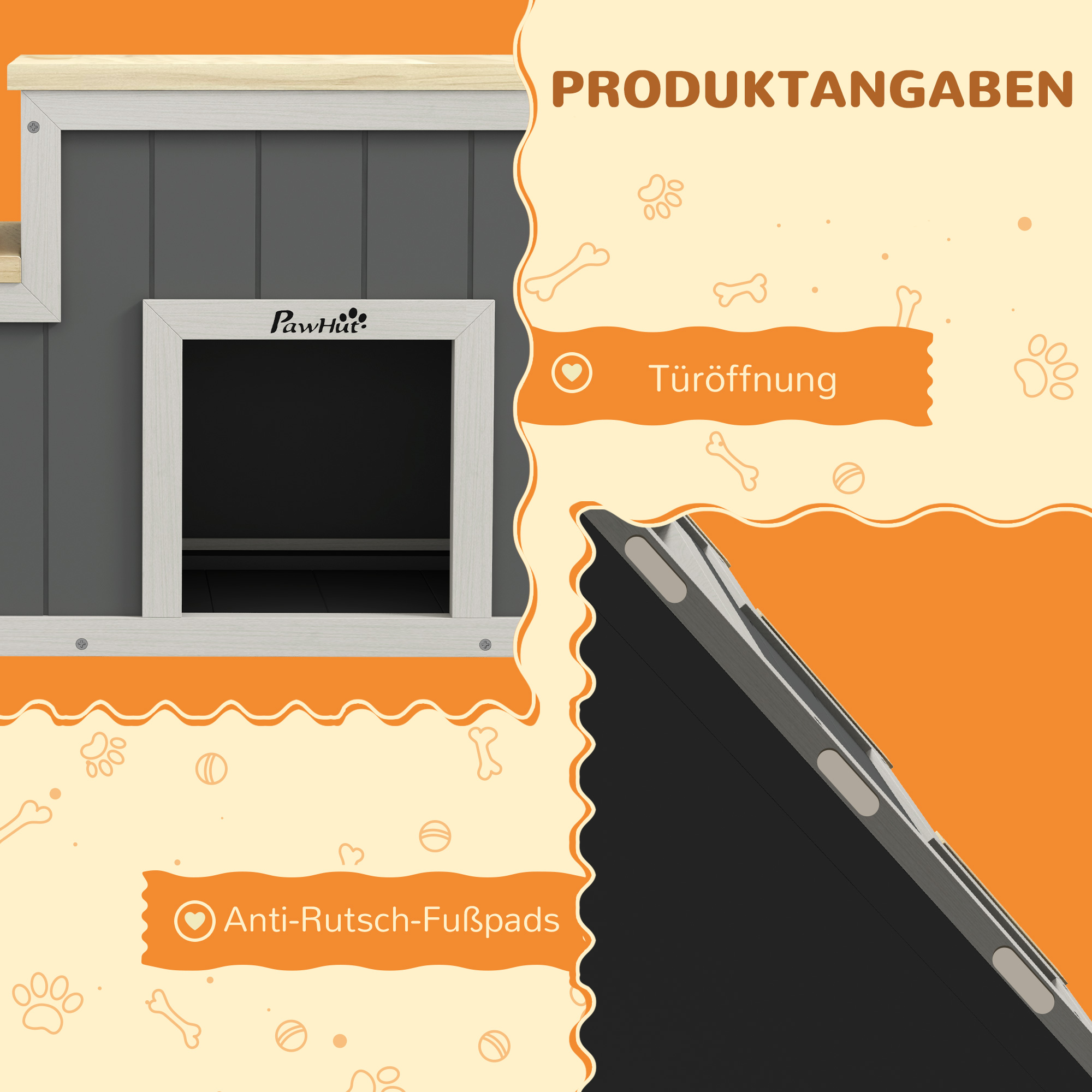 Steigern Sie den Komfort Ihres Haustieres mit diesen innovativen Haustiertreppen von PawHut, Diese einzigartigen Stufen kombinieren ein gemütliches Hundehaus mit drei leicht zu erklimmenden Schritten und bieten somit die ideale Lösung für kleine Haustiere, Die Haustiertreppe verfügen über rutschfeste Fußpolster für Sicherheit und einen eleganten Holzrahmen, der nahtlos zu Ihrer Wohnkultur passt, Schenken Sie Ihrem geliebten Haustier den Weg ins Paradies,