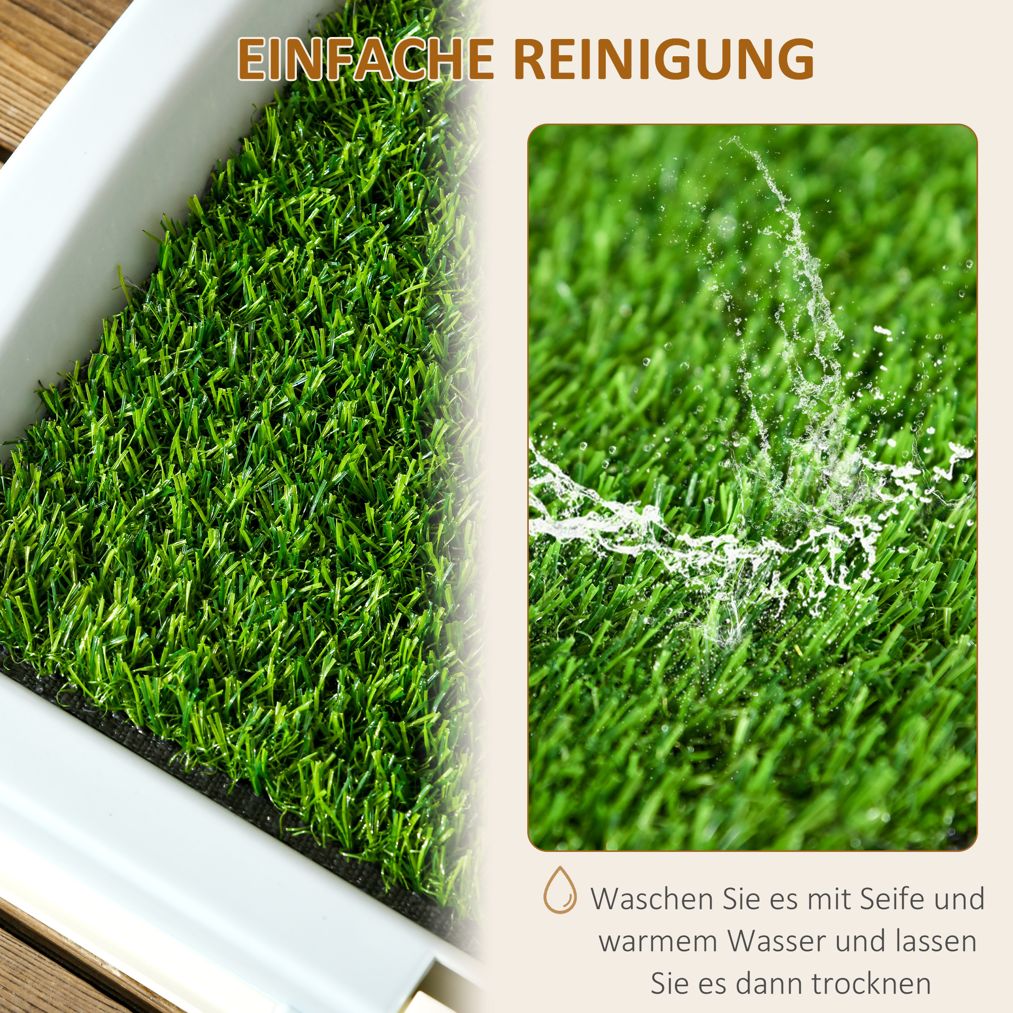 Heben Sie den Gassi-Gang auf ein neues Niveau! Das 3-Schichten-Design - künstliche Grasmatte, Gitterpanel und Tablett - vereinfacht das Trockenwerden und macht das Welpentraining zum Kinderspiel, Das realistische Gras ahmt die Natur nach und fördert natürliche Gewohnheiten, Dank der einfachen Demontage und Reinigung ist die Pflege eines sauberen und geruchsfreien Zuhauses ein Kinderspiel, Erleben Sie noch heute Bequemlichkeit und ein glückliches Haustier!