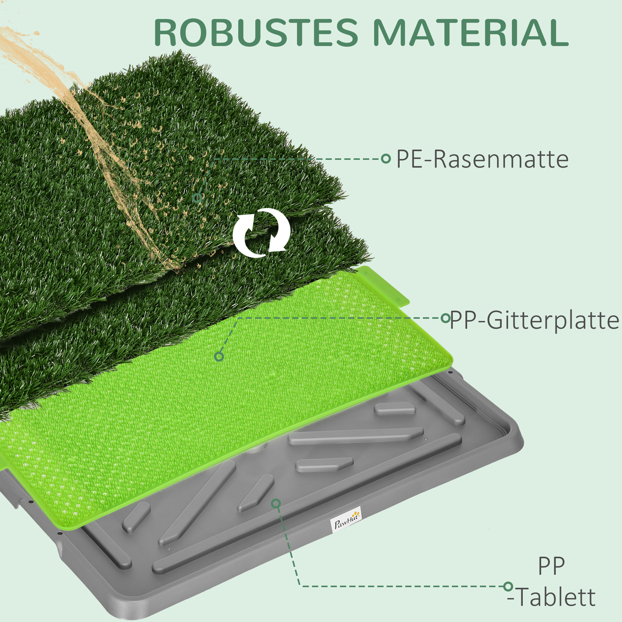 Verwandeln Sie das Gassitraining mit der PawHut Hundetoilette! Dieses geräumige Hundeklo mit realistischem Kunstgras und einer Auffangschale verfügt über Drainagelöcher für einfache Pflege und wird mit einer Ersatz-Grasmatte geliefert, die einen schnelle Wechsel ermöglicht, Ideal für den Innen- und Außenbereich, hilft sie Ihrem Welpen, schneller stubenrein zu werden, Geeignet für Hunde mit einer Körperlänge bis 50 cm, Einfach mit Wasser abspülen und fertig!
