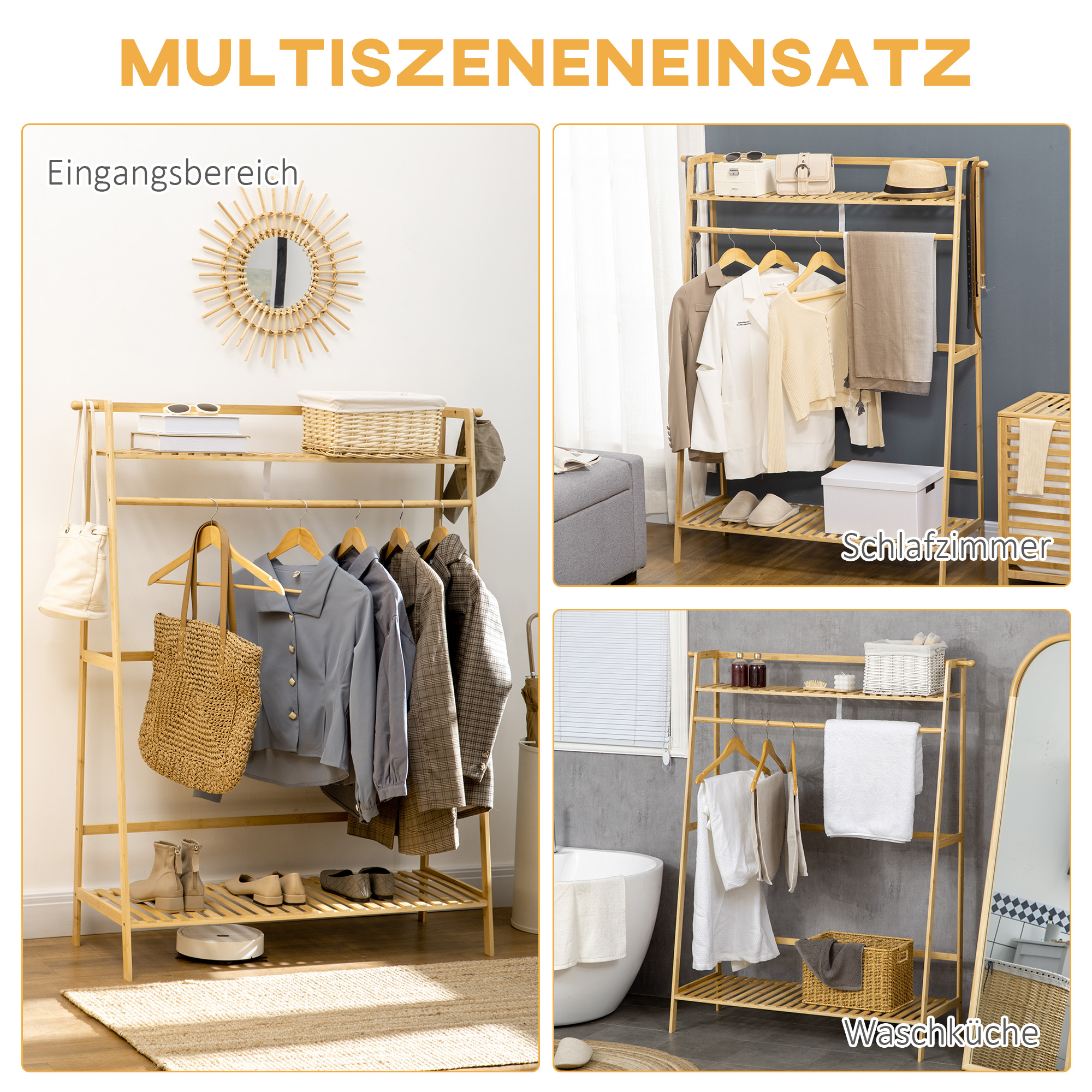 Kleiderständer aus Bambus, 2 Kleiderhaken, Kleiderstange, 2 Ablagen, 114 x 40 x 139 cm
