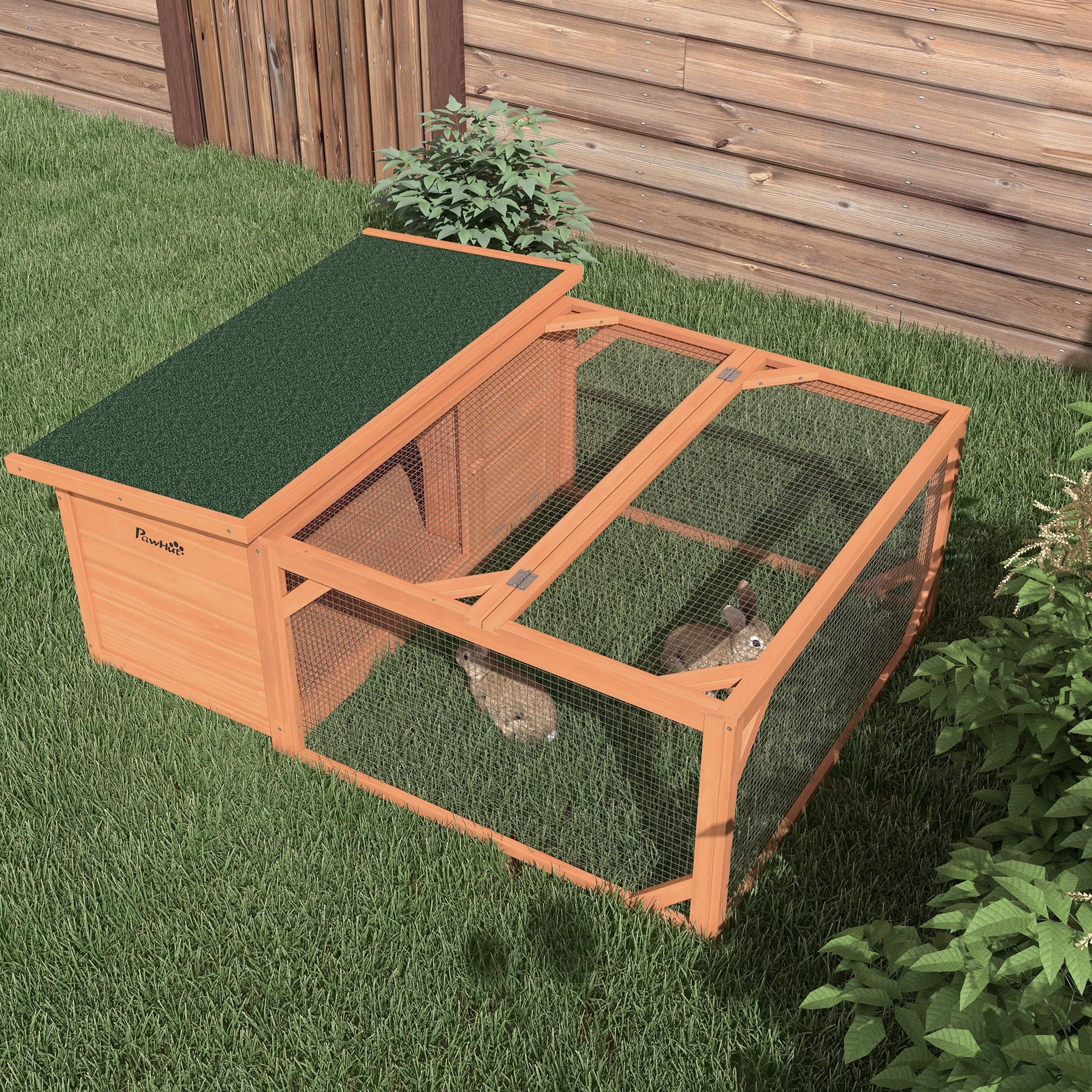 Geben Sie Ihren pelzigen Freunden eine ideale Mischung aus Freiheit und Sicherheit mit einem PawHut Zwergkaninchenstall, Sie erleben das Beste aus beiden Welten in einem Zuhause, in dem sie viel Platz zum Herumhüpfen haben, Der geschlossene Bereich ist als Schlafplatz und Rückzugsort ausgelegt, während der Auslauf zum Spielen gedacht ist, Die obere Abdeckung kann geöffnet und geschlossen werden, um einen einfachen Zugang zum Innenraum für Reinigung, Fütterung, usw,